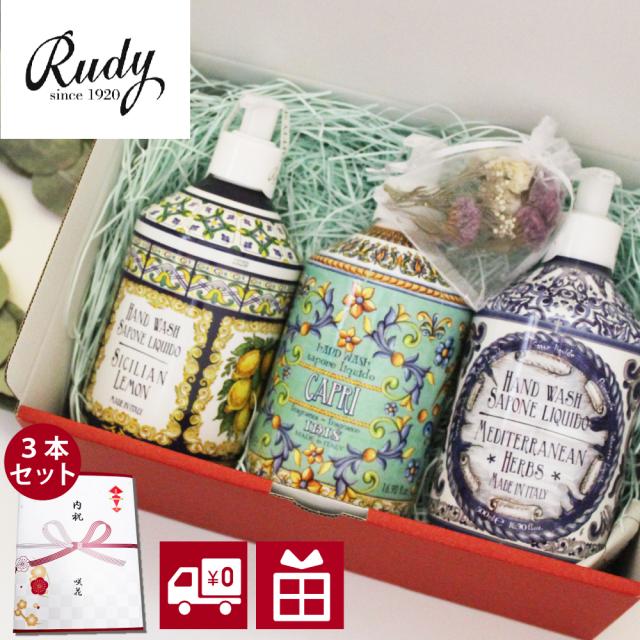 ハンドソープ ギフト おしゃれ 敬老の日 お祝い 誕生日 内祝い 御中元 お歳暮 お返し プレゼント Rudy ルディ ラ・マヨルカ リキッドソープ ボディケア 保湿 天然成分 いい香り 贅沢 オススメ 人気商品 送料無料【国内正規取扱店】 \選べる3本セット/