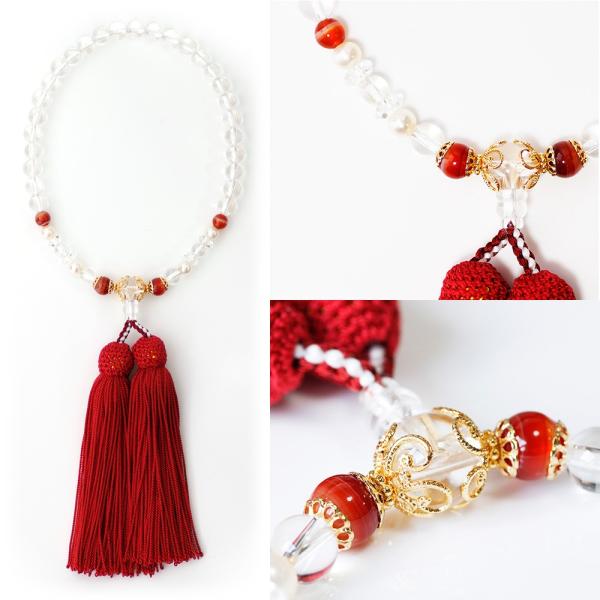 数珠 水晶 数珠 袋付き 京都 葬式 葬儀 成人式 母の日 結婚式 ハレの日 法要 源氏物語シリーズ 空蝉