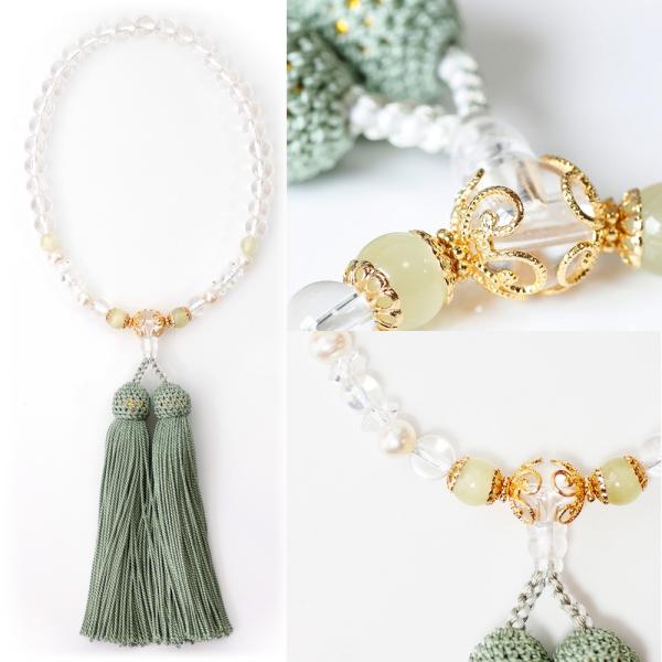 数珠 水晶 数珠 袋付き 京都 葬式 葬儀 成人式 母の日 結婚式 ハレの日 法要 源氏物語シリーズ 蕣姫君 サーペンティン