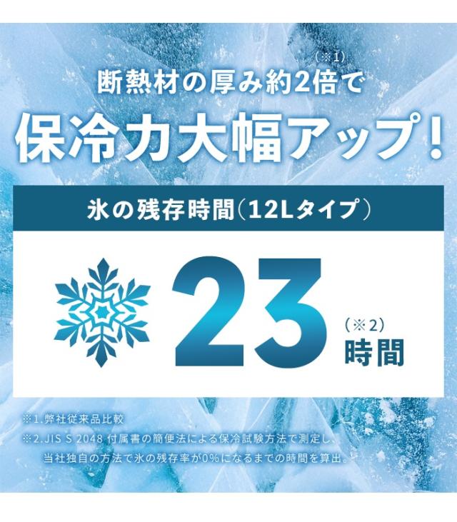 断熱材の厚みが従来品の約2倍で保冷力大幅アップ。