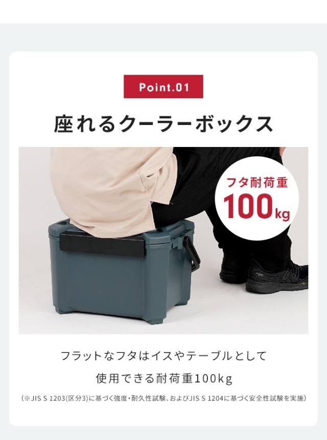 | ・座れるフタ耐荷重100kg ・フタの着脱可能 ・積み重ね可能 ・氷の残存時間:23時間 ※JIS S 2048 付属書の簡便法による保冷試験方法で測定し、当社独自の方法で氷の残存率が0%になるまでの時間を算出。 |