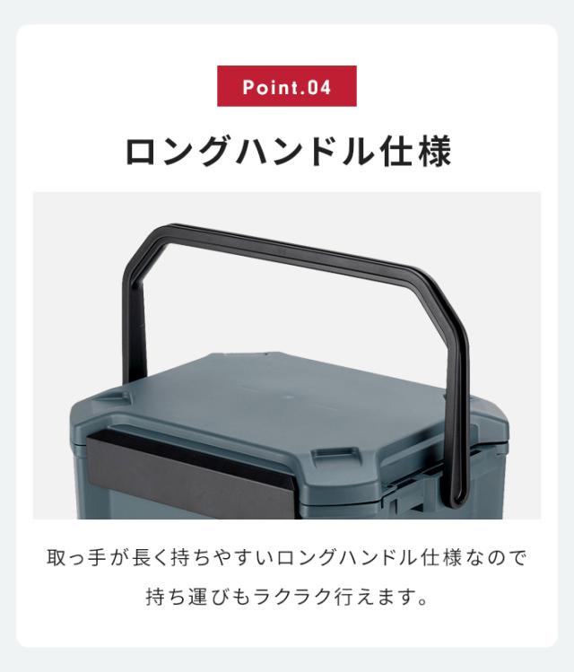 | 座れるクーラーボックス。 断熱材の厚みが従来品の約2倍で保冷力大幅アップ。 フラットなフタはイスやテーブルとして使用できる強度。 市販の南京錠が取り付けられる鍵穴付き。 ・断熱材厚み約2倍(従来品比較)で保冷力大幅アップ。 ・フタ耐荷重100kgでイスとしても使用可能な強度。 ・フラットなフタ形状でサイドテーブルとしても使用可能。 ・積み重ね可能。 ・南京錠がかけられる鍵穴付き。 ・持ち運びしやすいロングハンドル仕様。 ・しっかり留まる前面幅広バックル仕様。 ・用途と収納するものを想定したサイズ展開。 |