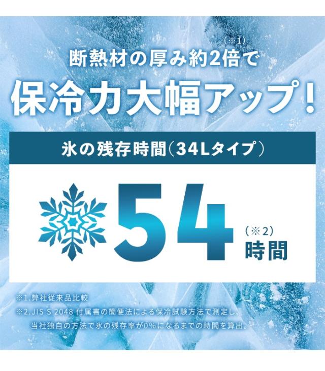 ※JIS S 2048 付属書の簡便法による保冷試験方法で測定し、当社独自の方法で氷の残存率が0%になるまでの時間を算出。