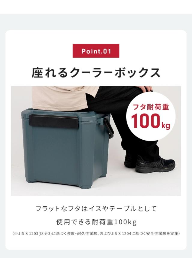 | ・座れるフタ耐荷重100kg ・フタの着脱可能 ・積み重ね可能 ・仕切板付き ・トレー付き ・氷の残存時間:54時間 ※JIS S 2048 付属書の簡便法による保冷試験方法で測定し、当社独自の方法で氷の残存率が0%になるまでの時間を算出。 |