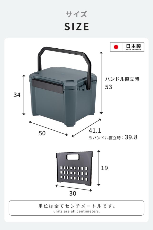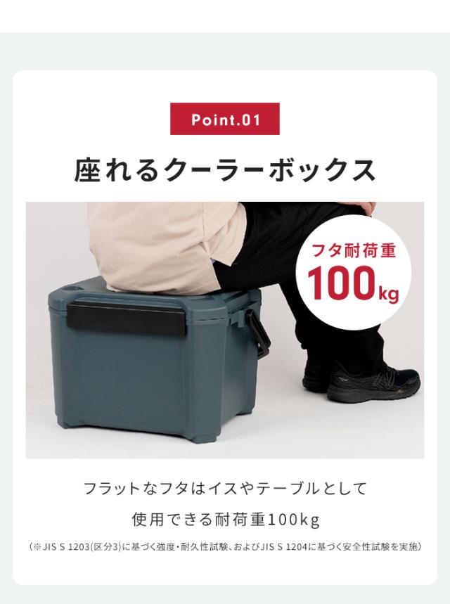 | ・座れるフタ耐荷重100kg ・フタの着脱可能 ・積み重ね可能 ・仕切板付き ・氷の残存時間:36時間 ※JIS S 2048 付属書の簡便法による保冷試験方法で測定し、当社独自の方法で氷の残存率が0%になるまでの時間を算出。 |