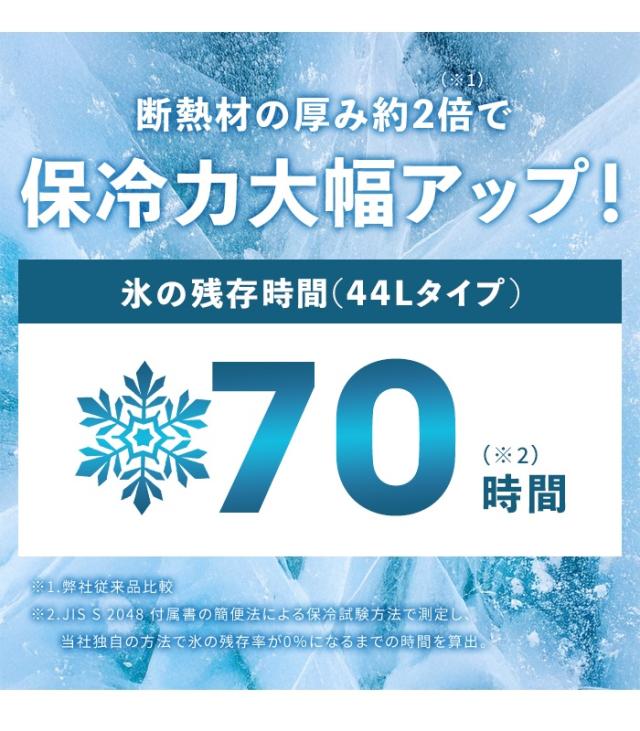 断熱材の厚みが従来品の約2倍で保冷力大幅アップ。