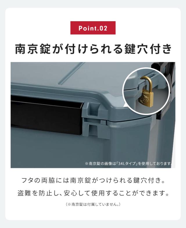市販の南京錠が取り付けられる鍵穴付き。