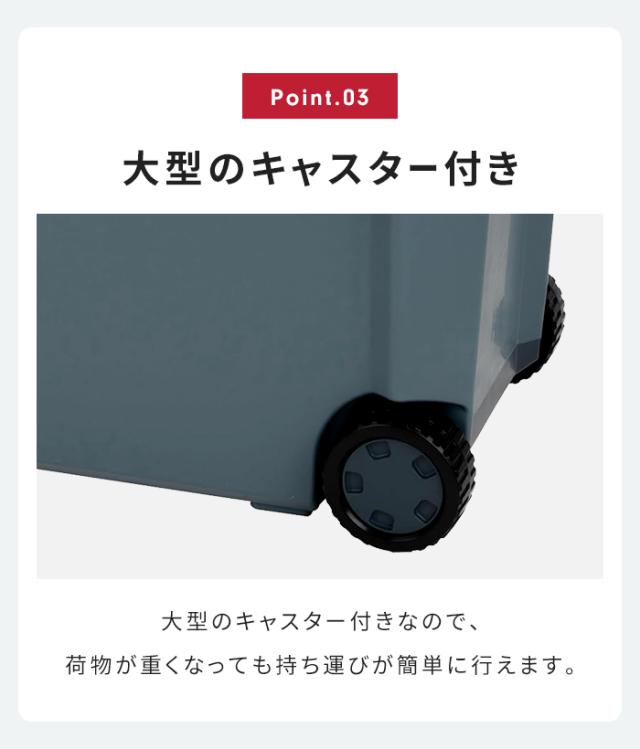 左右ハンドル(片側ロングハンドル)、大型キャスター(φ12cm)で持ち運び、移動もラクラク。