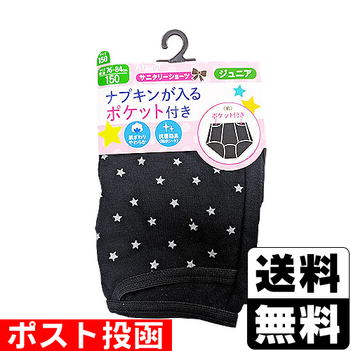 ■ポスト投函■[アツギ]ジュニアサニタリーショーツ ポケット付 星柄 ブラック 150cmサイズ