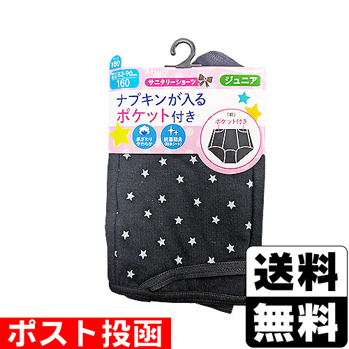 ■ポスト投函■[アツギ]ジュニアサニタリーショーツ ポケット付 星柄 ブラック 160cmサイズ