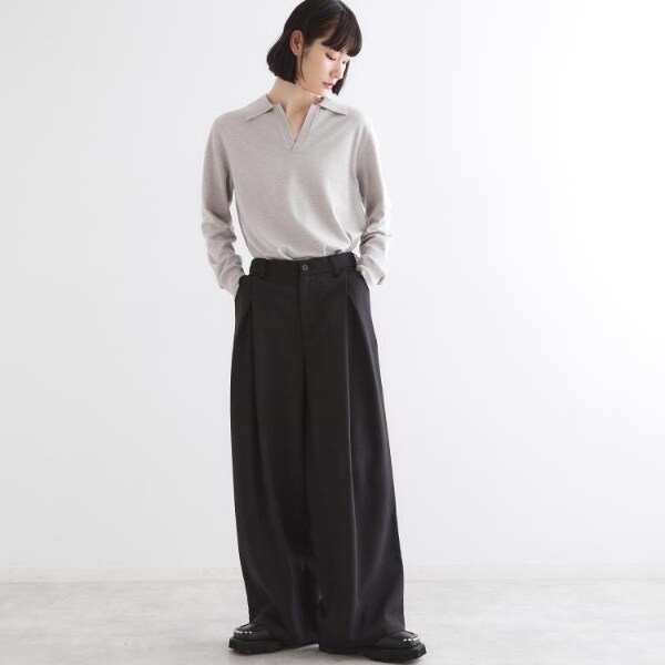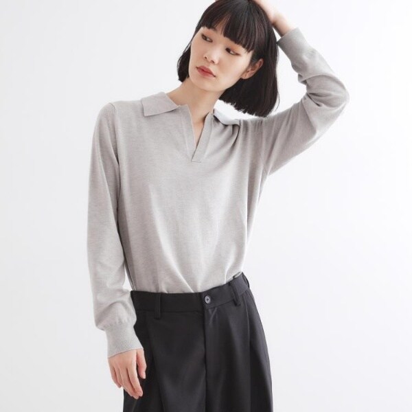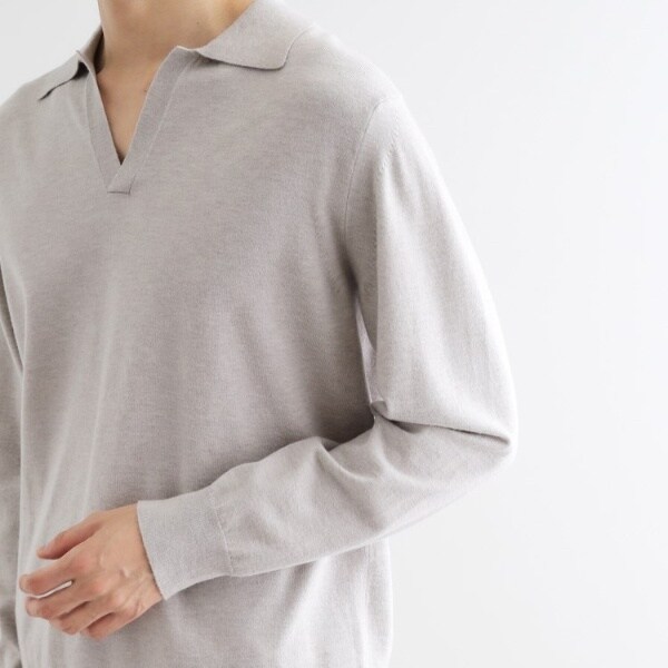 スキッパーポロなのでインナーにTシャツやタンクトップはもちろんですが、インナーに長袖シャツを合わせたレイヤードスタイルもおススメです。