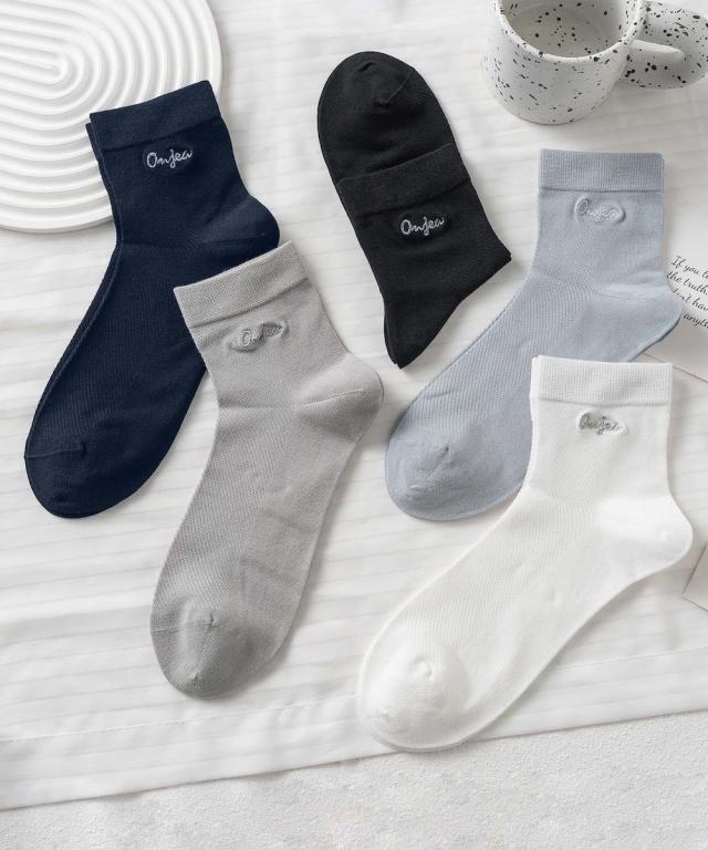 【MOSOX】ロゴ刺繍デザインレーヨン混ソックス5足セット