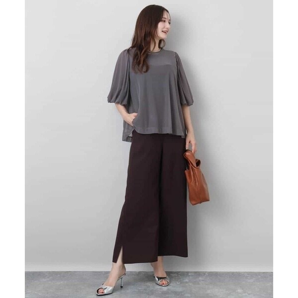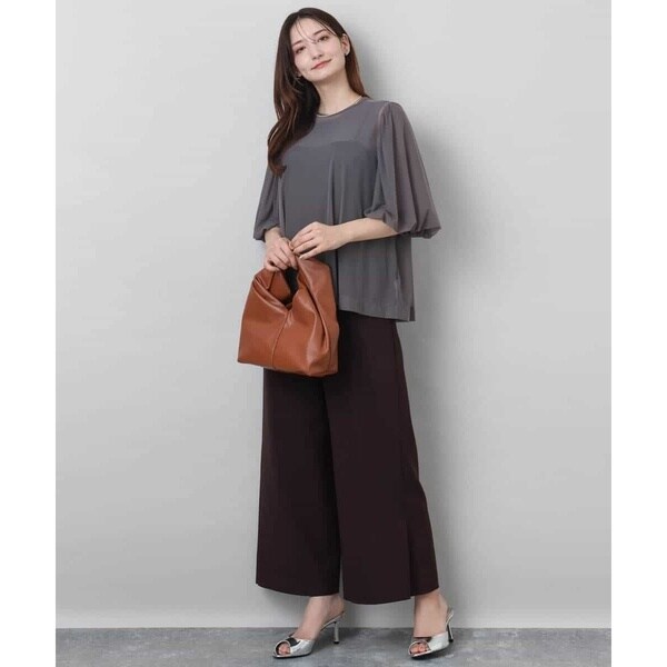 梳毛調のきれいめな表面感ですが、ポリエステル素材なので扱いやすさが魅力的。シワも気になりにくく、ご自宅で洗えるイージーケア素材です。