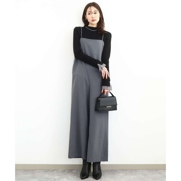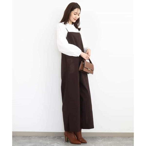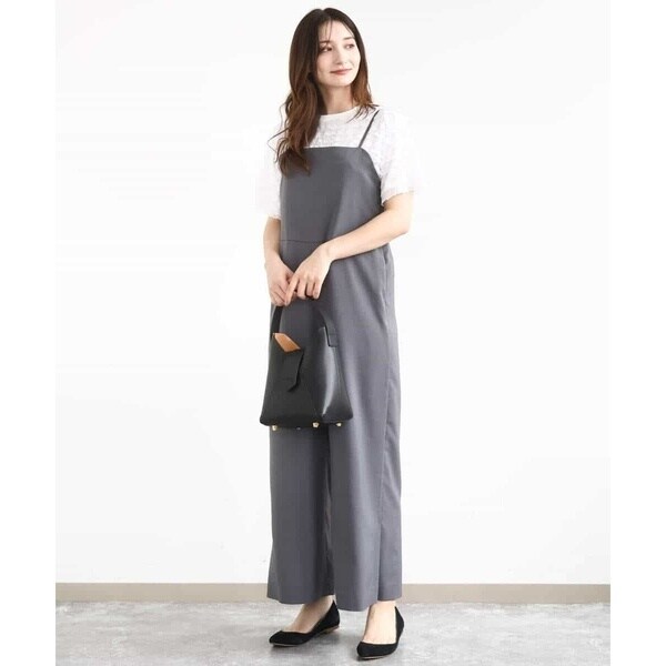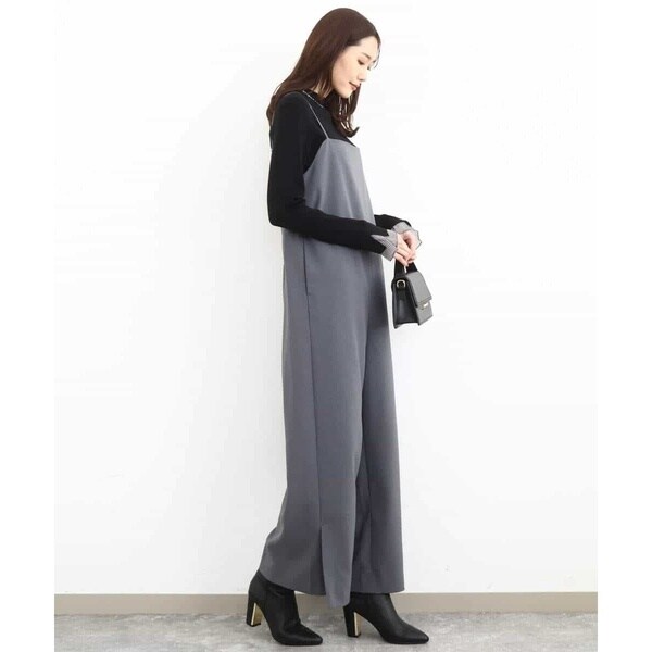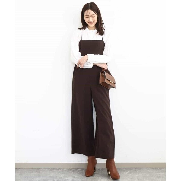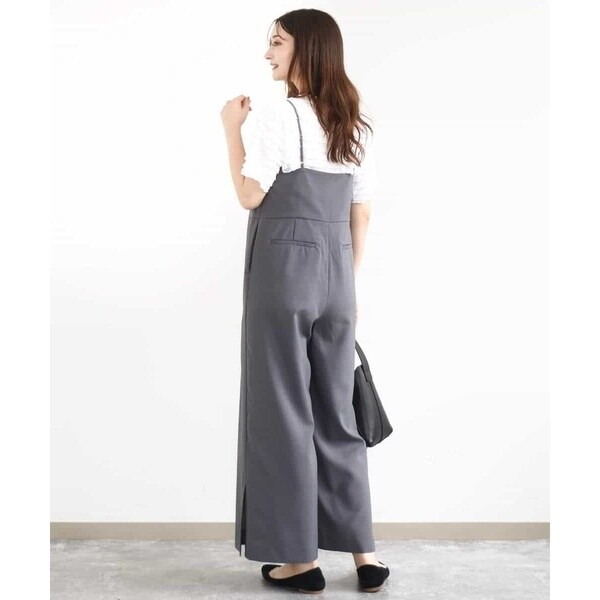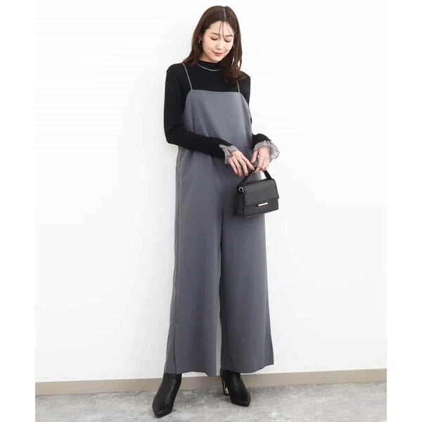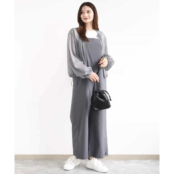 ラフさもありつつ今っぽい洒落感を出すならオールインワンが一押し。シンプルながら洗練されたデザインが大人カジュアルにちょうど良い◎。体型カバーしつつスタイルアップ効果も期待できます。インナーや足元で印象チェンジも自在。ロングシーズン着用可能なのもポイントです。肩紐の長さを調節できるので身長153cmでお直しなしで着用できました。シワに