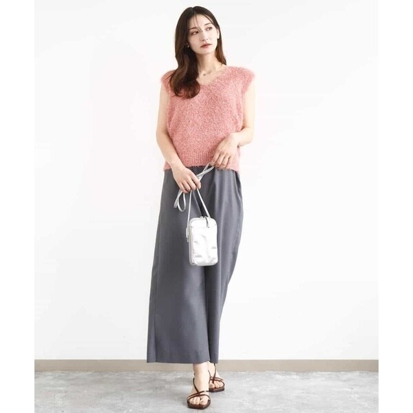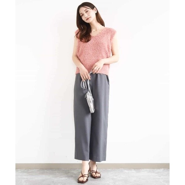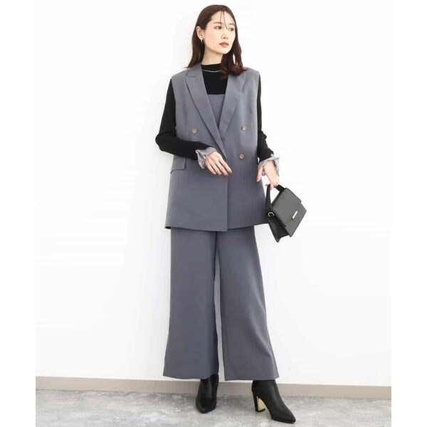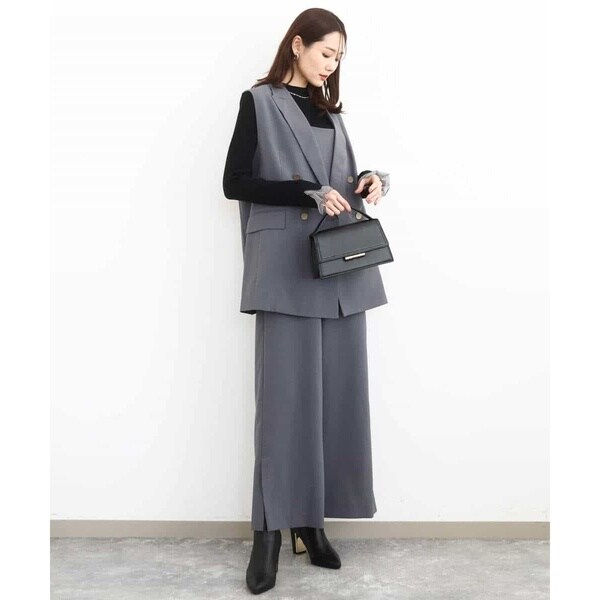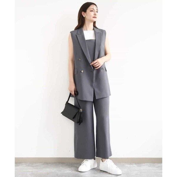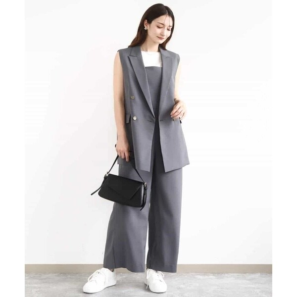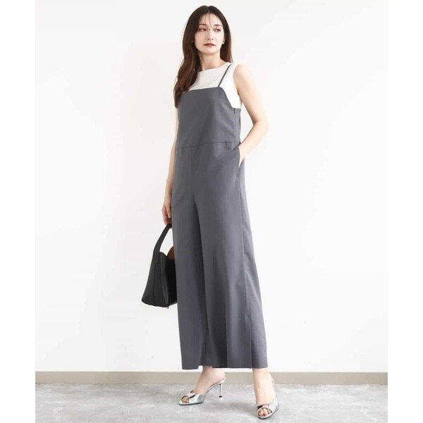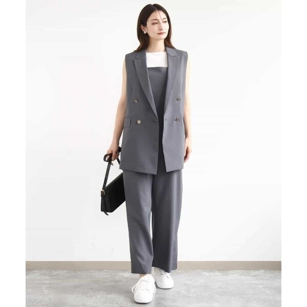 ストラップ部分が細く華奢なデザインは女性らしく、インナーが合わせやすいのも嬉しい。Tシャツやタンクトップ、ニット合わせはもちろん、上からシャツやカーディガンを羽織っても決まります。同素材のジレとセットアップのコーディネートもおすすめです。
