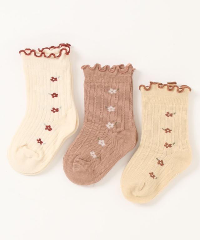 【mosox】かわいい小花柄入りkids靴下3点セット