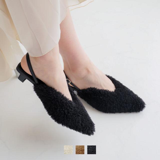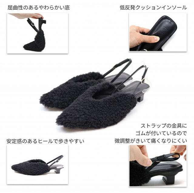 ・ポリュームのあるもこもこボアが大人カワイイスリングバックパンプス!