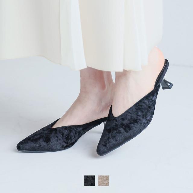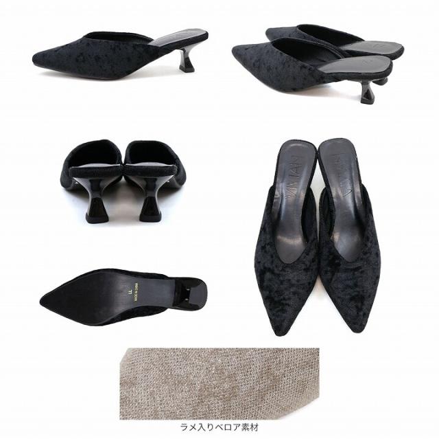 【25秋冬新作】キラキララメ入りベロアミュールパンプス