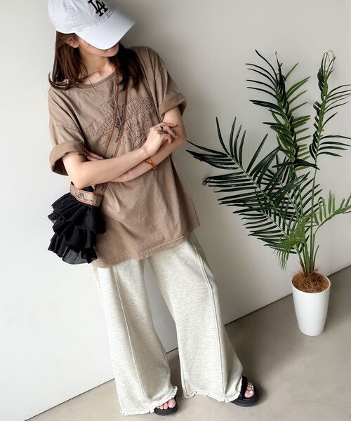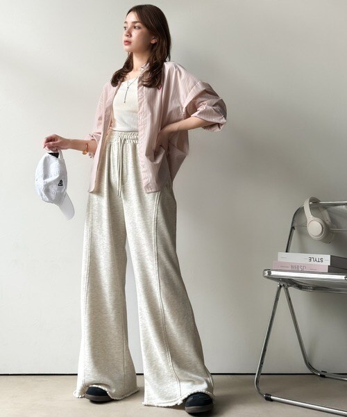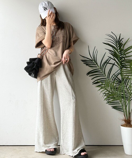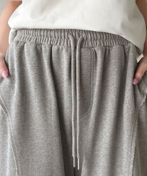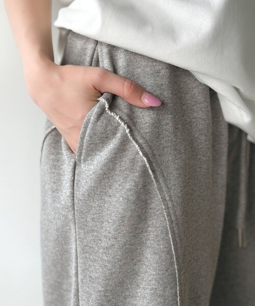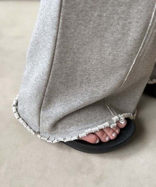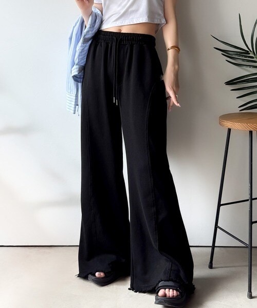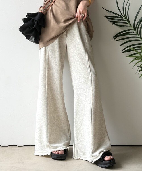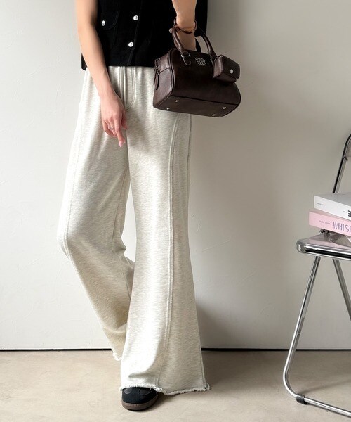 裾クラッシュ×裏毛素材のフレアパンツ。