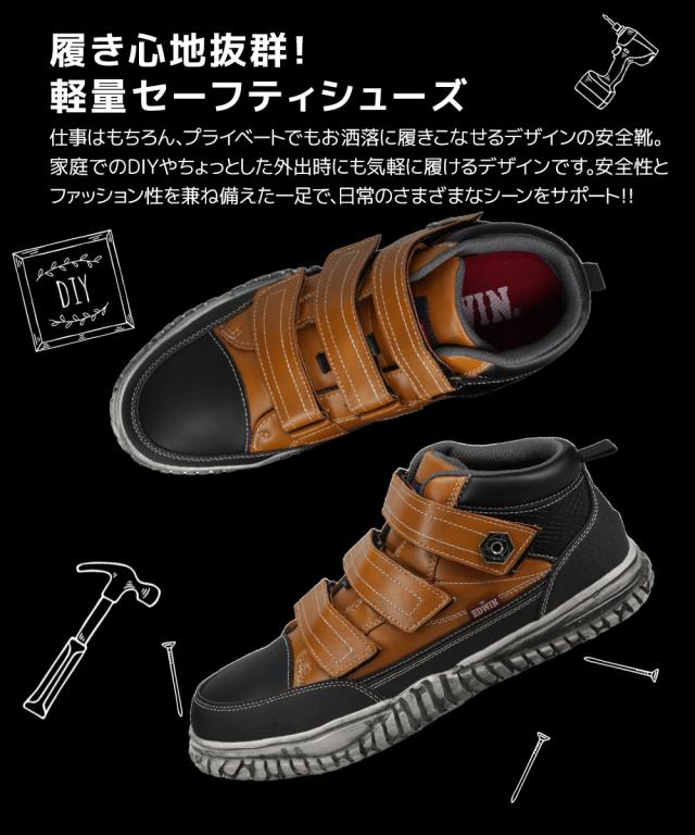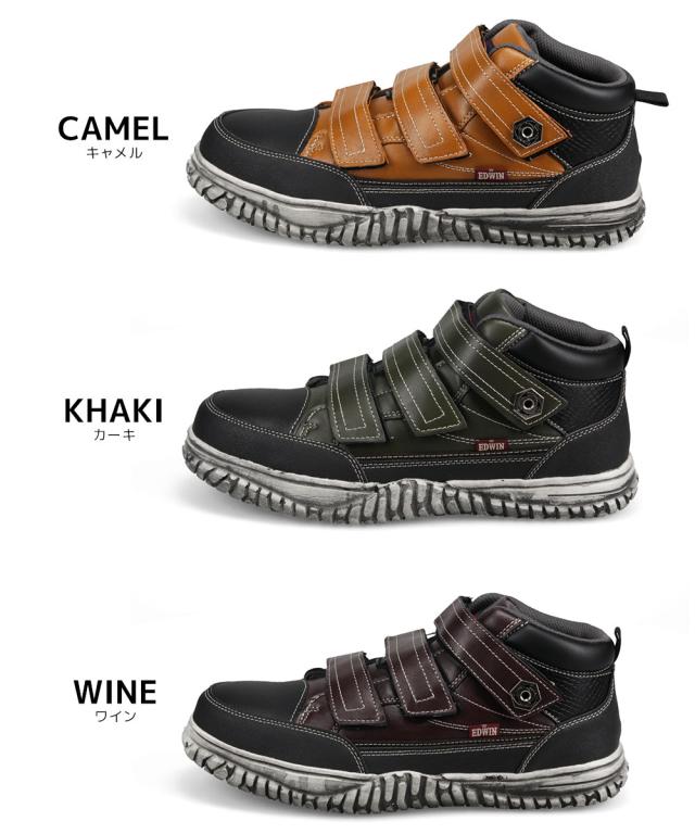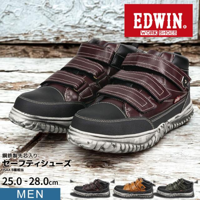 エドウィン 安全靴 セーフティシューズ おすすめ 鉄芯入り 軽量 作業靴 ミッドカット おしゃれ スニーカー 男性 メンズ 耐熱 仕事靴 マジックテープ ベルクロ キャメル カーキ ワイン ワークシューズ セーフティブーツ 鋼鉄製先芯入り EDWIN 103