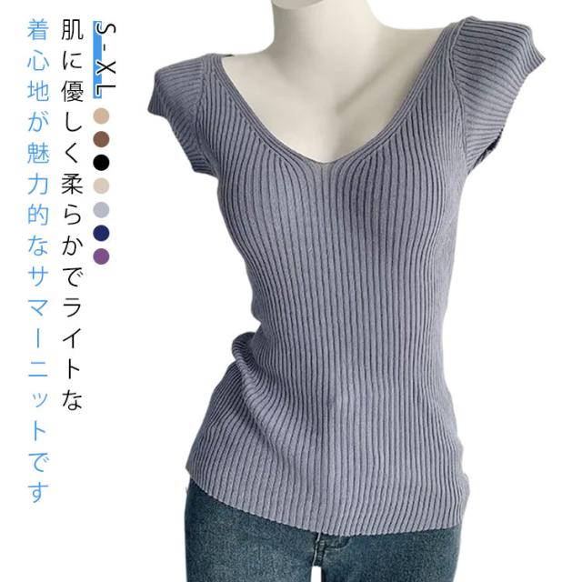 ニット Vネック レディース 接触冷感 ニットトップス サマーニット tシャツ 吸汗速乾 レディース 涼しい ストレッチ トップス 送料無料 薄手 ひんやり ニットソー 冷感 シンプル 無地 春夏 おしゃれ キレイめ 30代