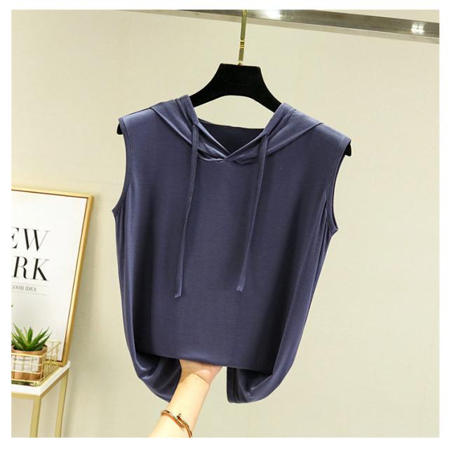カットソー モダール生地 フード付き ノースリーブ タンクトップ トップス ゆったり レディース Tシャツ 薄手 無地 tシャツ 普段着 パーカー ベスト スポーツウエア プルオーバー 春夏 レイヤード カジュアル