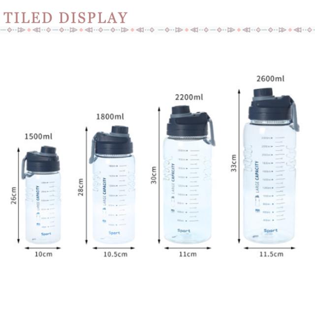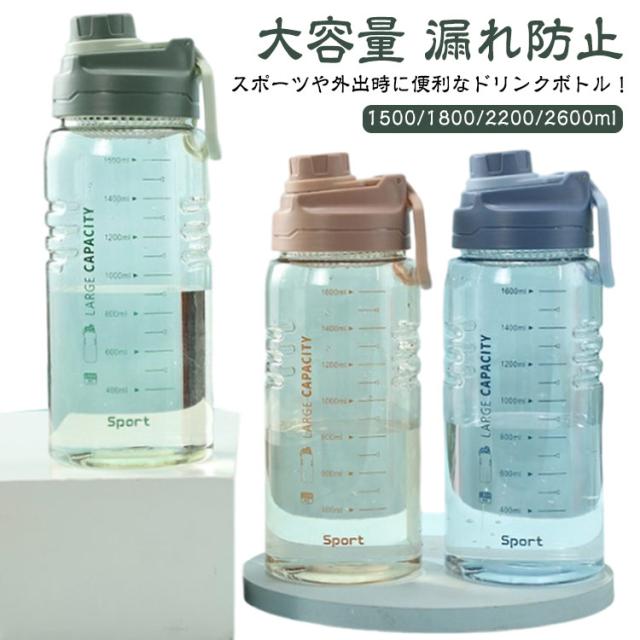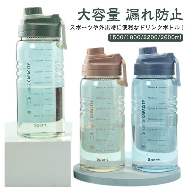 ウォーターボトル 大容量 1500ml 1800ml 2200ml 2600ml ボトル 2.6リットル 水筒 プラスチック フィルター スポーツボトル 直飲み タイムマーカー 目盛り付き ドリンクボトル 携帯便利 漏れ防止 子供大人兼用 アウトドア スポーツ ランニング ジム 自転車 部活 通学 通勤