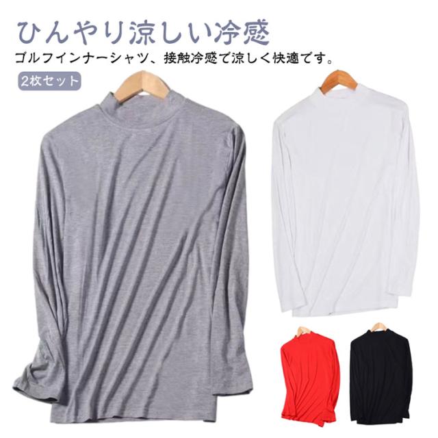 2枚セット ゴルフウェア インナー 涼しい メンズ 夏コーデ ゴルフシャツ 長袖Tシャツ スポーツシャツ アンダーシャツ 薄手通気 接触冷感 インナー アンダーウェア モックネック クール 涼感 ストレッチ UVカット 日焼け止め 夏物 男性 サマー用 無地 スポーツウェア