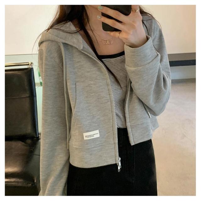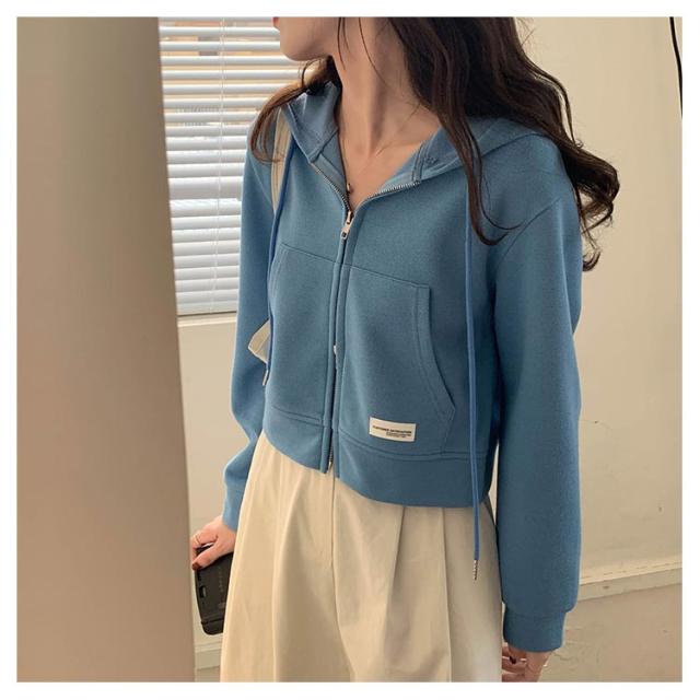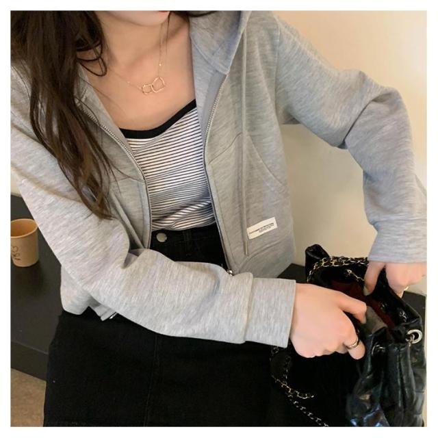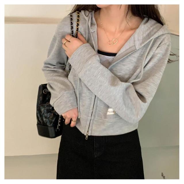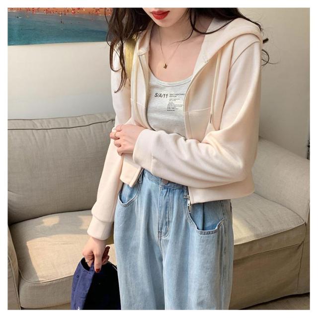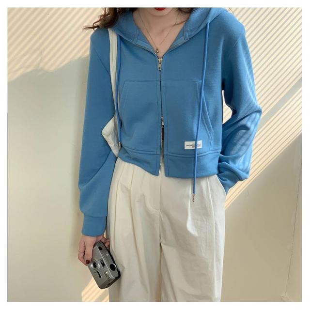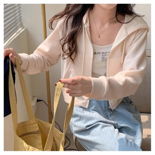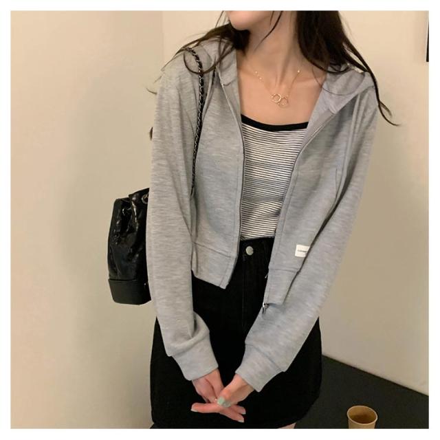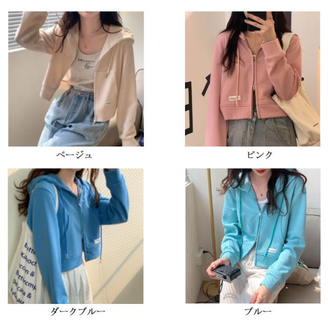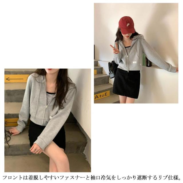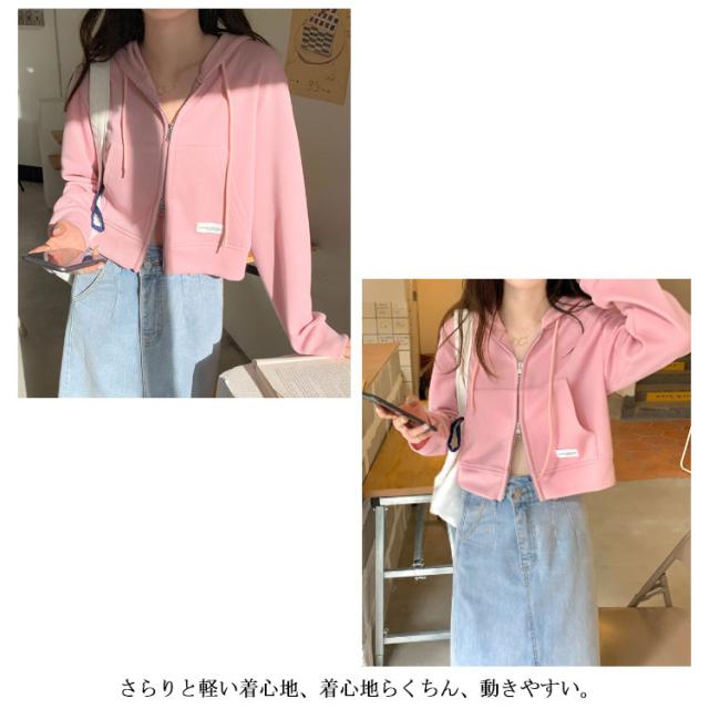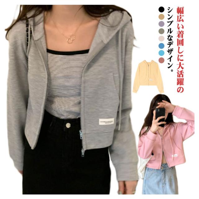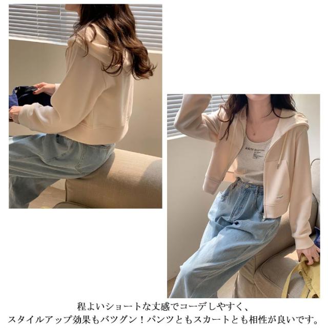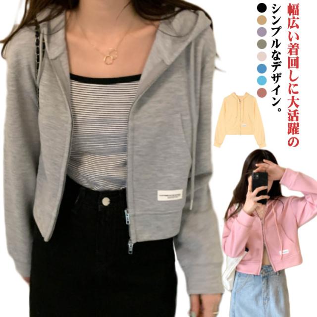 薄手 ショート丈 ジップアップ ジップアップパーカー 薄い ジップアップパーカー フード付き スウェットパーカー トップス 春夏 無地 シンプル おしゃれ カジュアル 無地パーカー スウェット 春秋 アウター 長袖