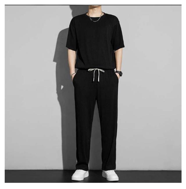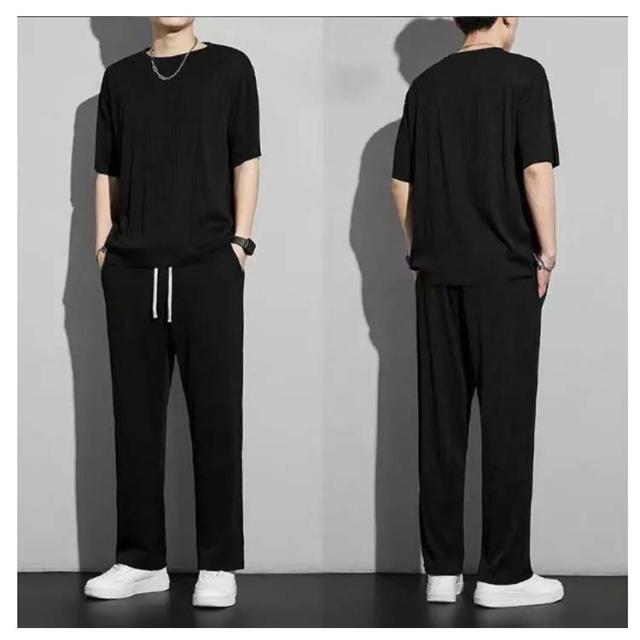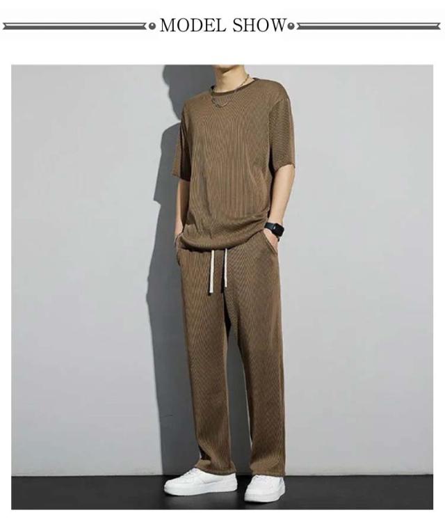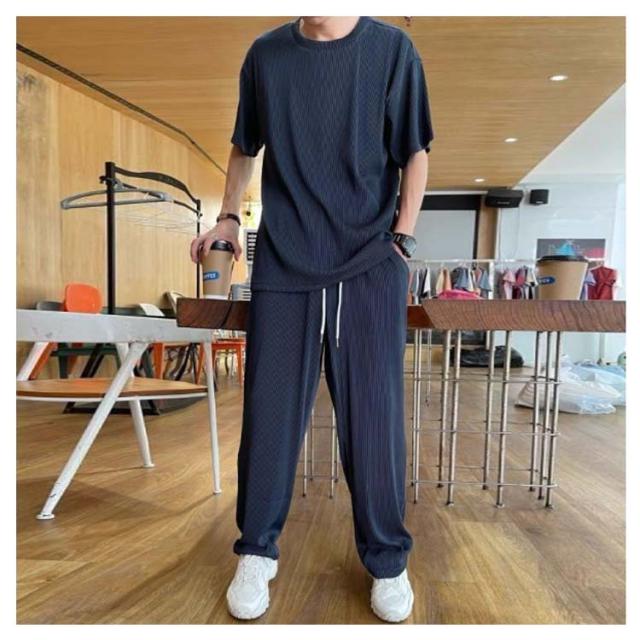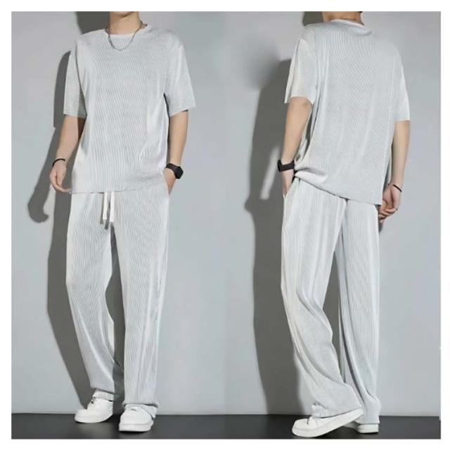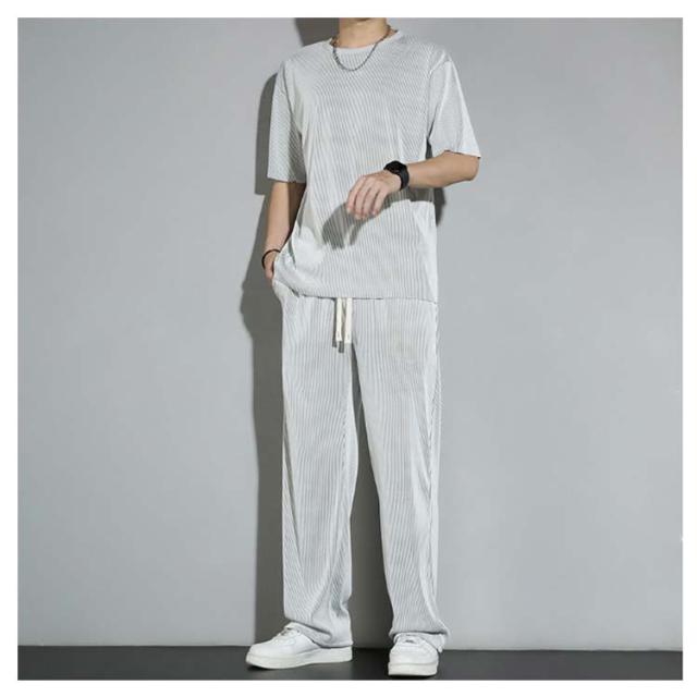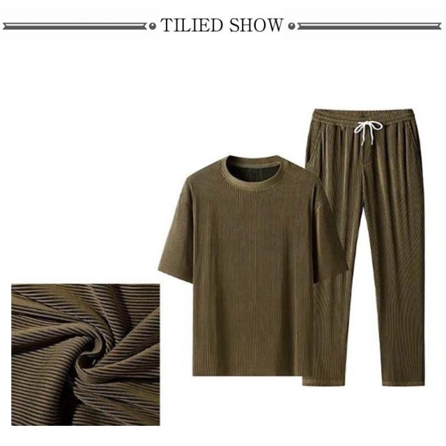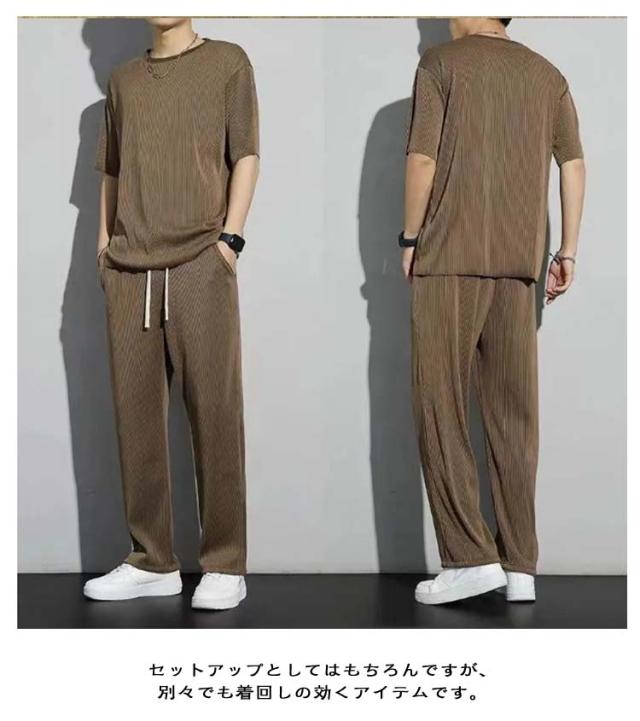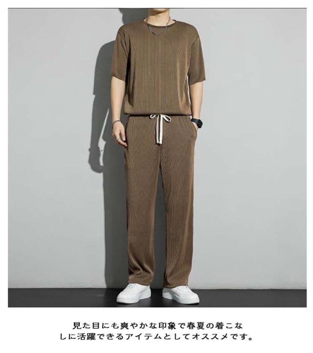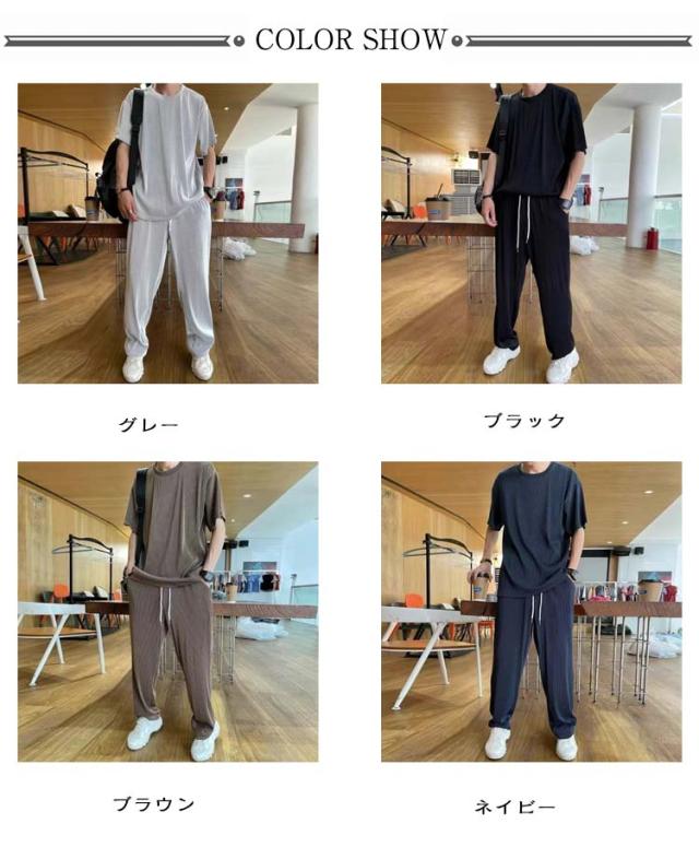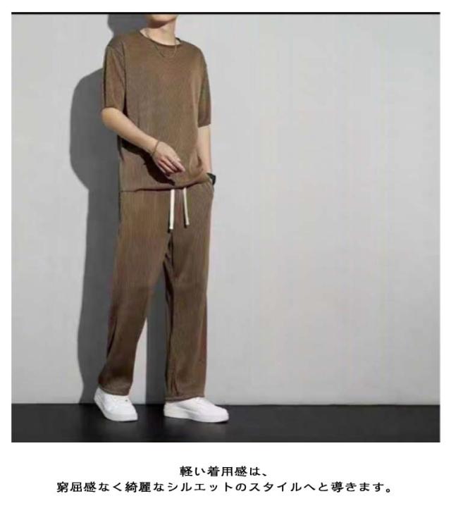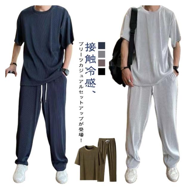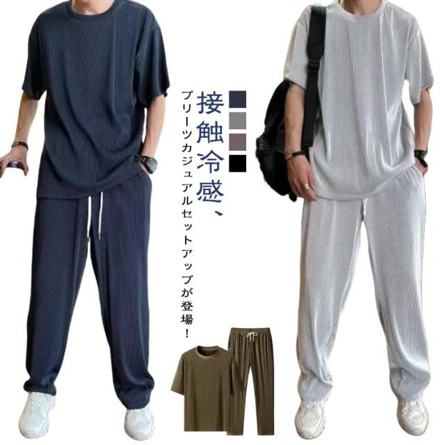大きいサイズ 夏物 メンズ セットアップ ロングパンツ メンズセットアップ アイスシルク プリーツ 速乾 スポーツ 上下セット カジュアルセット 半袖Tシャツ プリーツ 通勤 通学 接触冷感 カジュアル M L XL 2XL 3XL 4XL