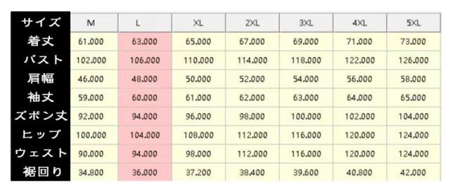 | サイズ | M L XL 2XL 3XL 4XL 5XL |