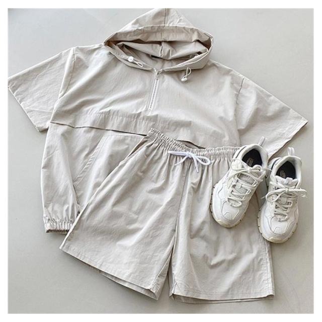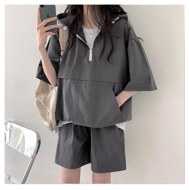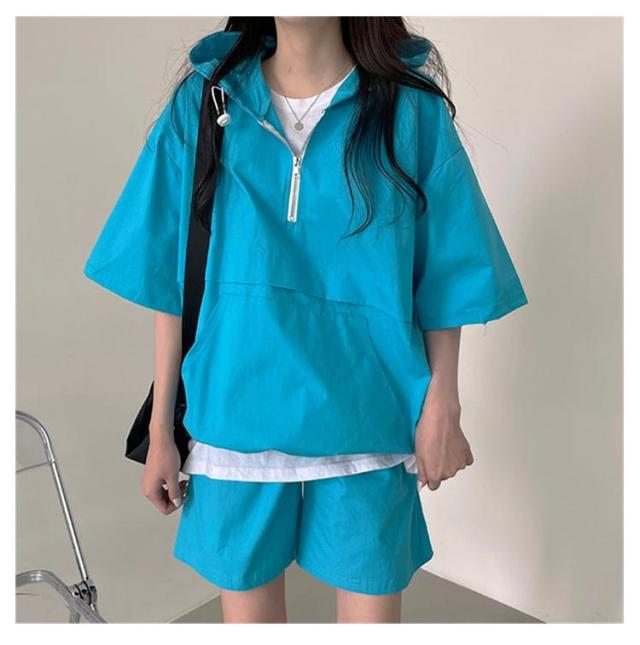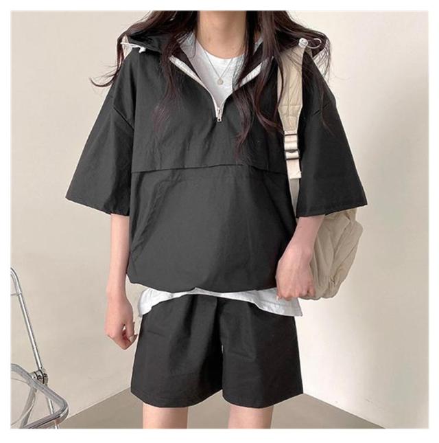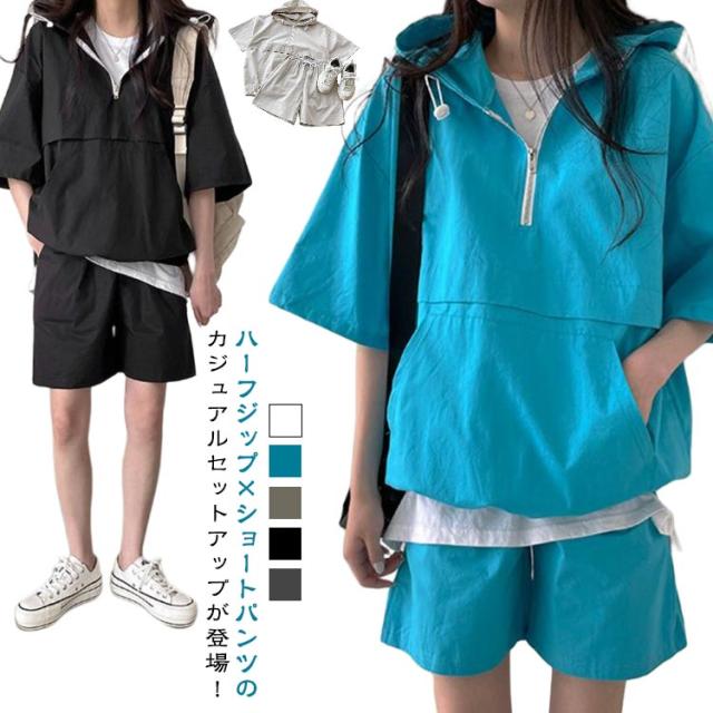 半袖 パーカー セットアップ 韓国ファッション 2XL レディース ショートパンツ 上下セット 着痩せ 体型カバー ダンス衣装 カジュアルセットアップ ビッグポケット アメカジ M L XL 半袖 3XL