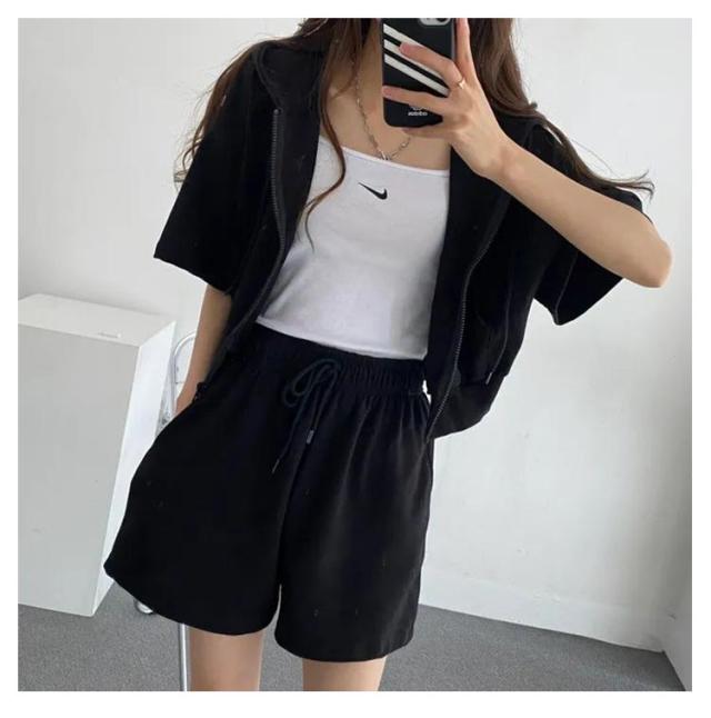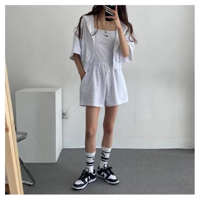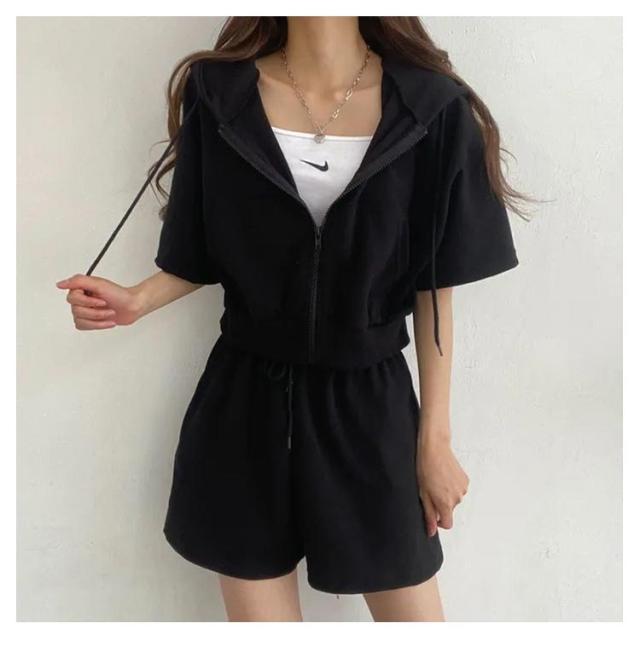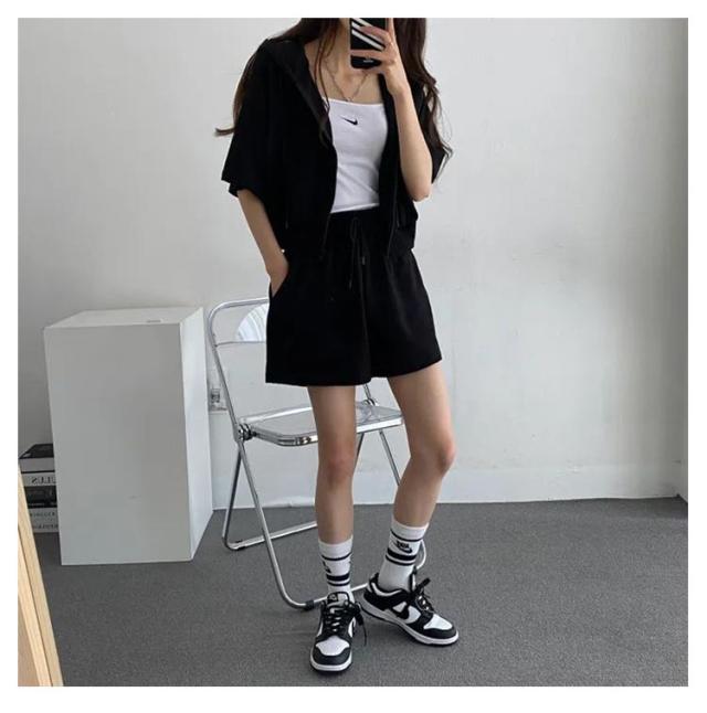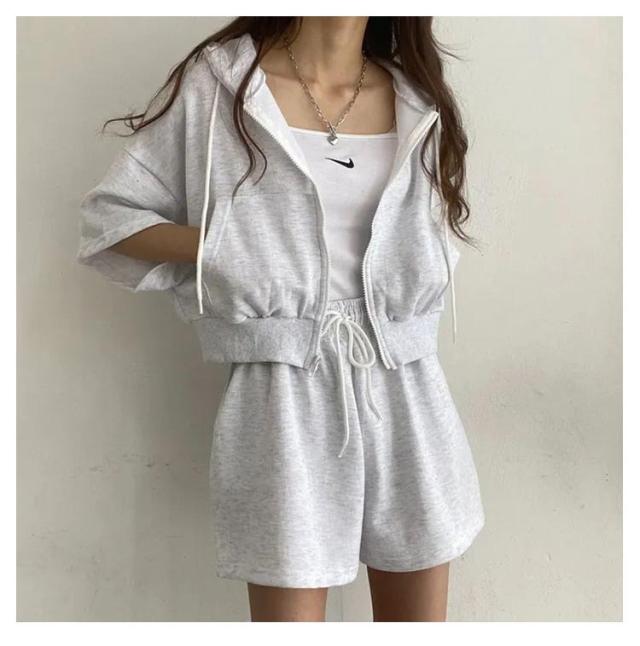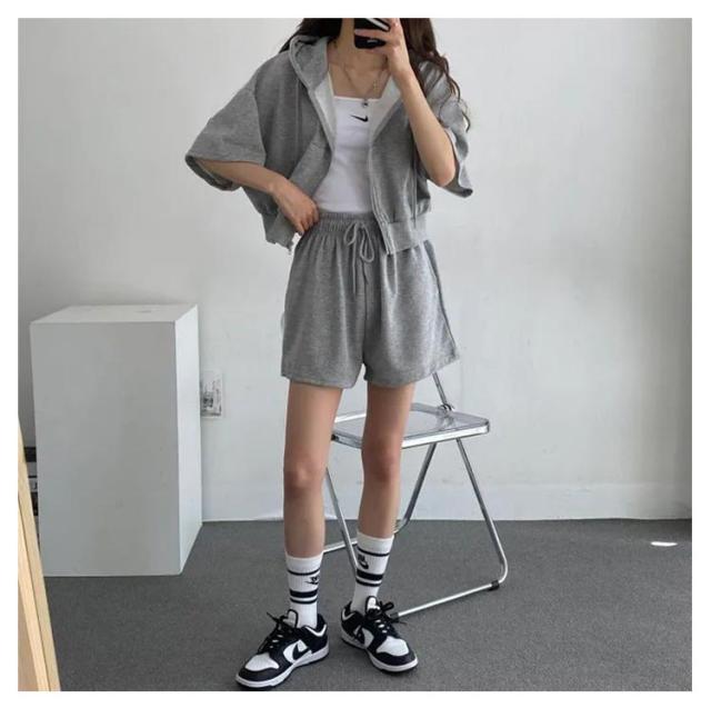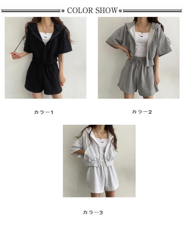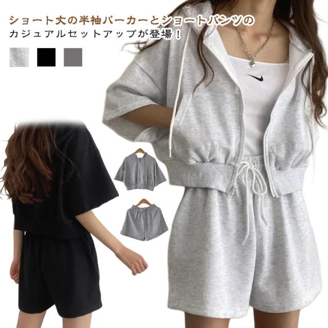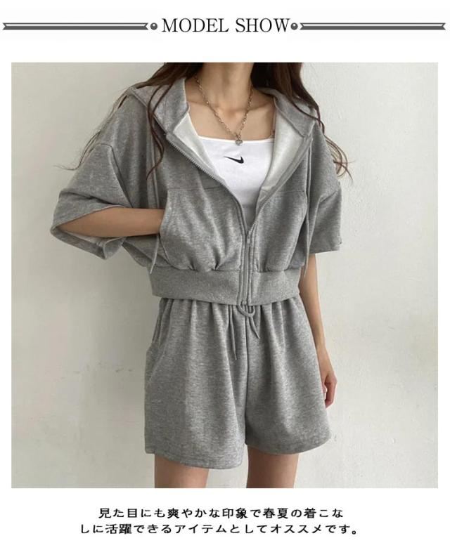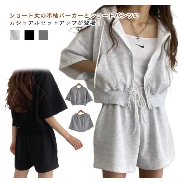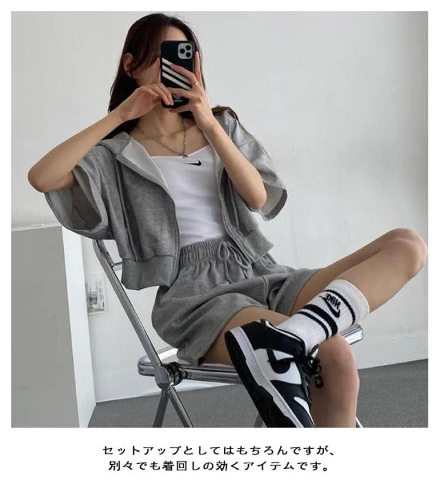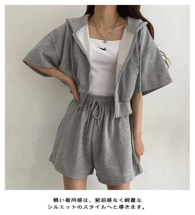 ショートパーカー パーカー カジュアルセットアップ レディース M ショートパンツ セットアップ 韓国ファッション 上下セット スウェット フード付き 着痩せ 体型カバー ジャージ ダンス衣装 カジュアル S パーカー L XL