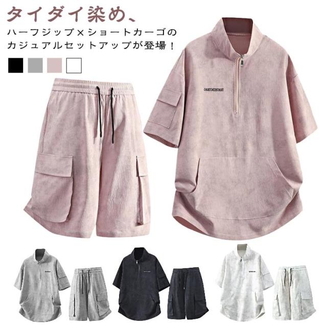 セットアップ レディース ジャージ 立ち襟 メンズ カジュアルセットアップ タイダイ染め タイダイ染め 上下セット ショートパンツ 着痩せ 体型カバー ダンス衣装 M アメカジ かっこいい 韓国ファッション L XL 2XL 3XL