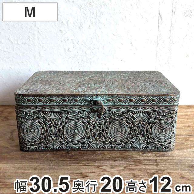 収納ボックス アンクブリキボックス M 小物入れ ふた付き 幅30.5×奥行20×高さ12cm ( 収納ケース 収納 ボックス ケース 収納箱 蓋付き ブリキ フタ付き アンティーク レトロ インテリア ディスプレイ レース )
