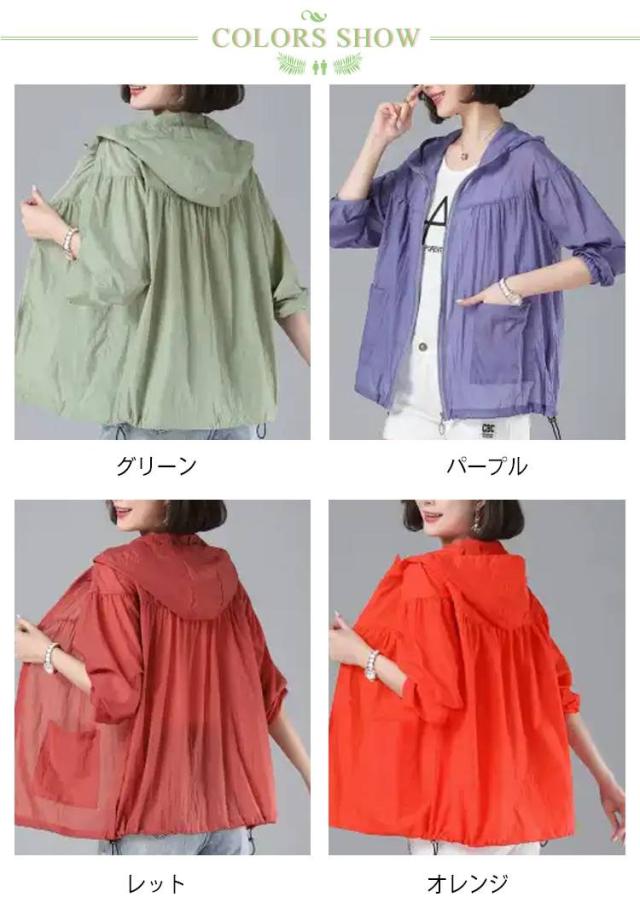 UVカット パーカー UVパーカー レディース マウンテンパーカー フード付き ジップアップ 春 夏 羽織 ゆったり 長袖 撥水加工 シアー トップス 接触冷感 透け感 UVカット パーカー おしゃれ 大きいサイズ 紫外線 冷房対策 軽量アウトドア 薄手 送料無料