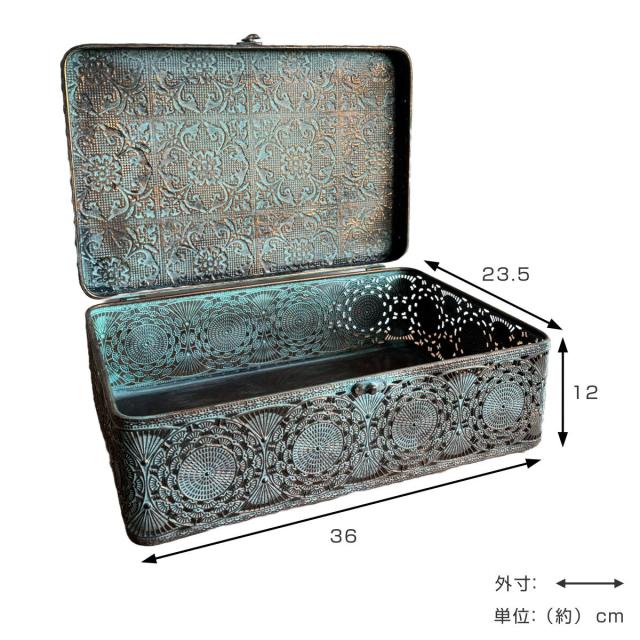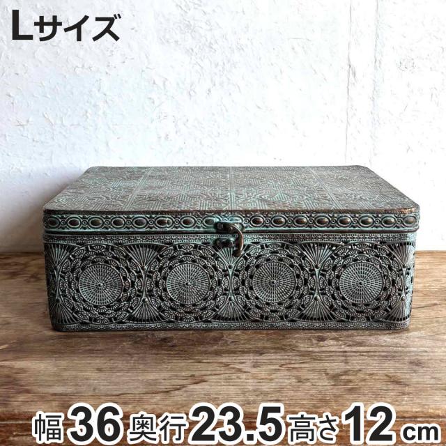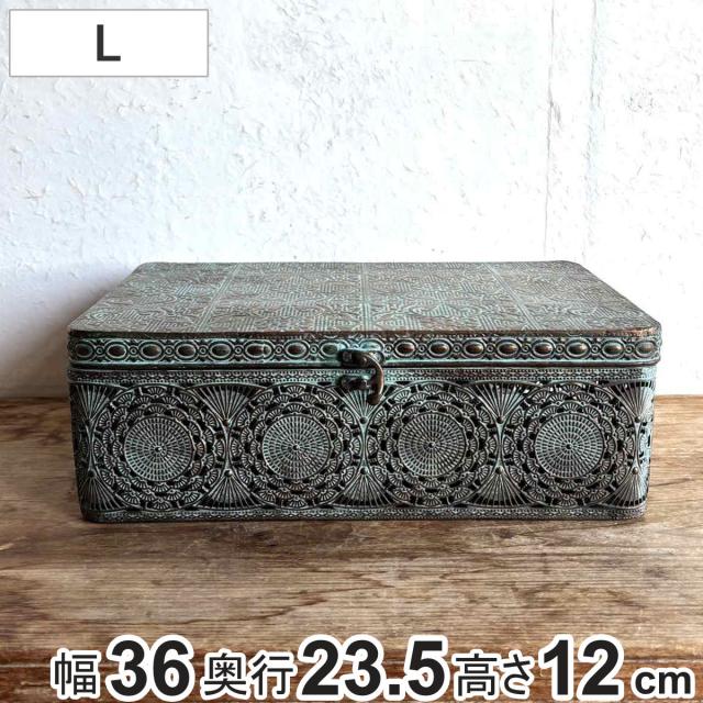 収納ボックス アンクブリキボックス L 小物入れ ふた付き 幅36×奥行23.5×高さ12cm ( 収納ケース 収納 ボックス ケース 収納箱 蓋付き ブリキ フタ付き アンティーク レトロ インテリア ディスプレイ レース )