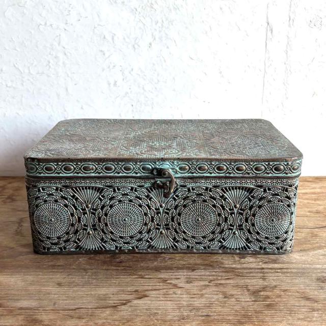 アンティークな雰囲気漂うブリキ製ボックス Lサイズ