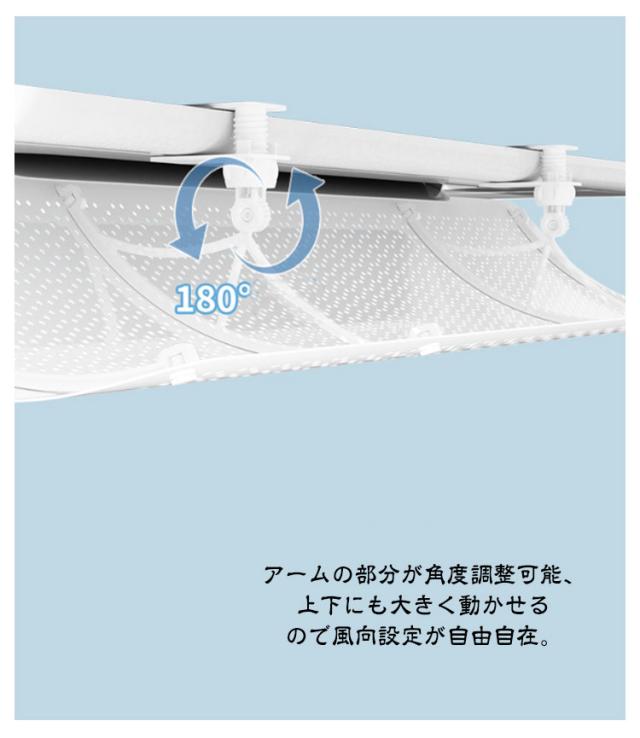 | 優れたメッシュデザイン!エアコン風よけカバー。冷房にも暖房にも対応! アームの部分が角度調整可能、上下にも大きく動かせるので風向設定が自由自在。 簡単にでエアコンに取り付けが可能!ネジや穴あけも不要だから天井の壁を傷める心配なし。 風をコントロールして直撃風・温度ムラを解消し、快適な空間を作ります。 取り付け方法:1.サポートフレームをパネルに固定します2.接続部品でサポートフレームとブラケットを組み立てます3.クリップをはめ込み、ねじ式キャップを回してしっかり固定します4.角度を調整して、取り付け完了です! | |