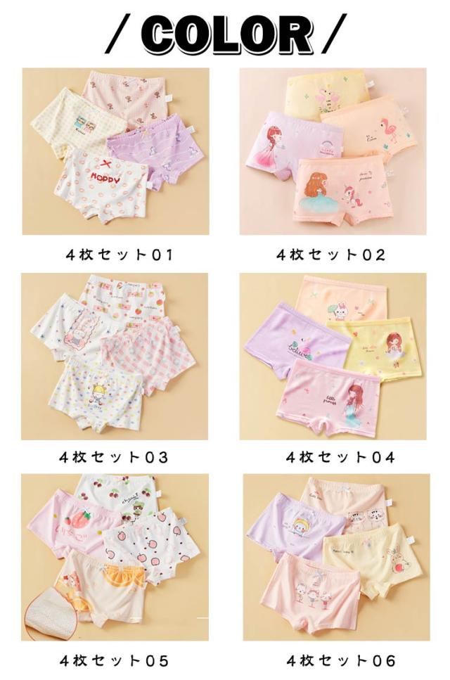 4枚セット キッズ 下着 インナーパンツ 綿 インナー ボクサーパンツ 下着 子供 キッズ パンツ 女児ショーツ 女の子 4枚セット 下着 ガールズ ジュニア アンダーウェアー 通園