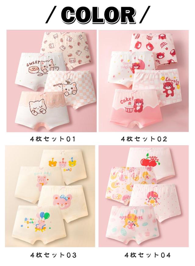 子供 綿 パンツ 下着 4枚セット インナーパンツ 女児ショーツ 下着 インナー キッズ 4枚セット 下着 女の子 キッズ 女の子 ガールズ ジュニア アンダーウェアー 通園