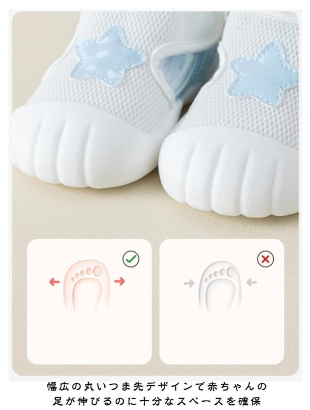 | つま先がガードされているので1歳児でも安心です マジックテープで調整できるので助かります! 通気性のあるオープンメッシュデザインで通気性と快適性を実現 幅広の丸いつま先デザインで赤ちゃんの足が伸びるのに十分なスペースを確保 滑り止めと耐摩耗性に優れたソール、深い溝で滑らずに安定した歩行練習が可能 | |