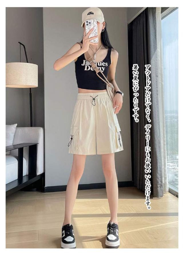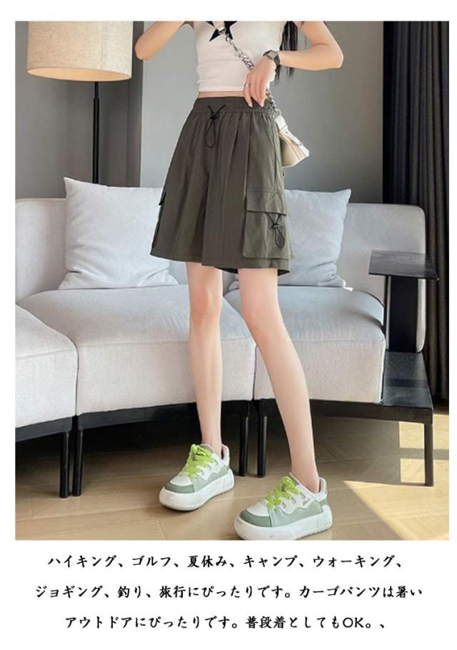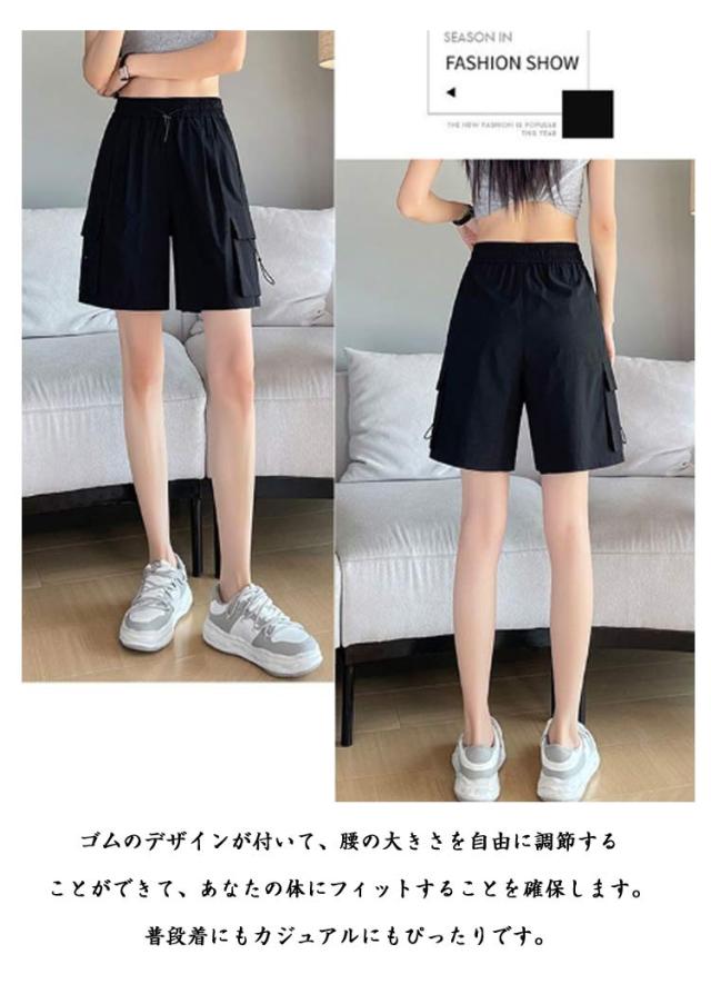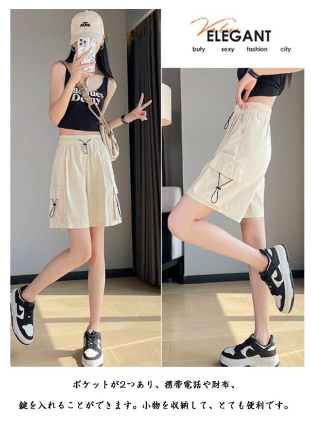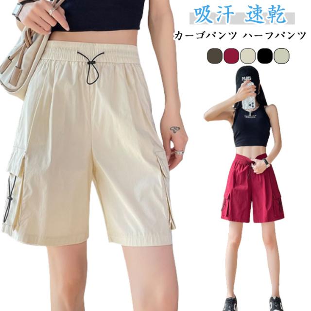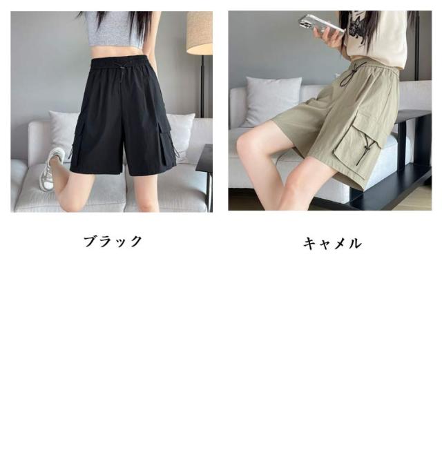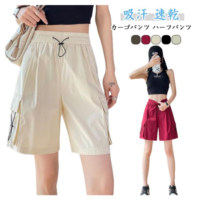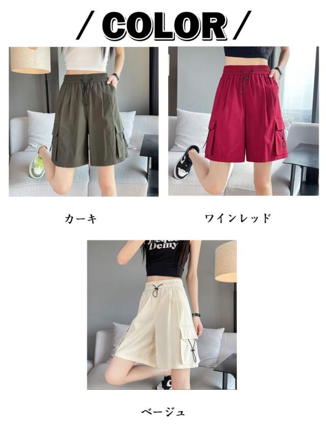レディース 薄手 レディース ハーフパンツ 5分丈 カーゴパンツ 夏 速乾 半ズボン ボトムス ワイドパンツ 通気 ショーパン ショートパンツ 吸汗 ポケット付き ポケット付き カジュアル アウトドア スポーツ ランニング