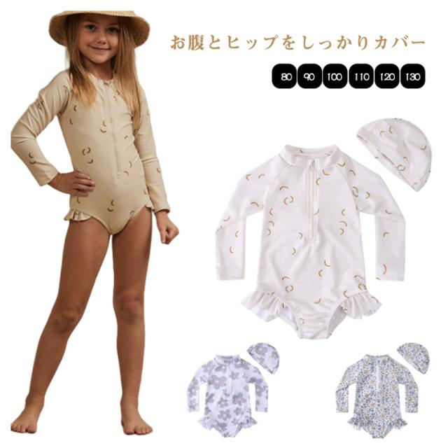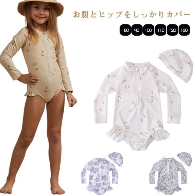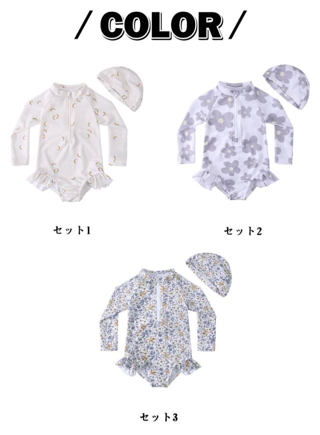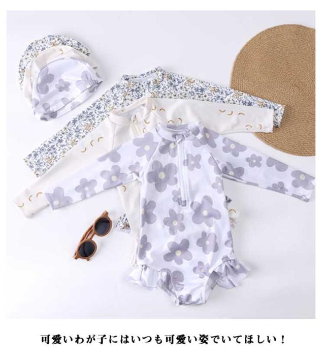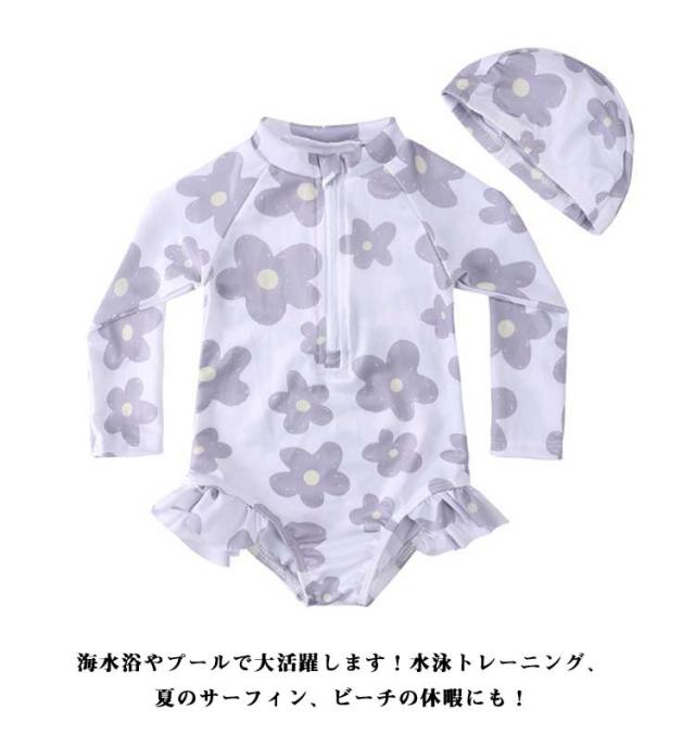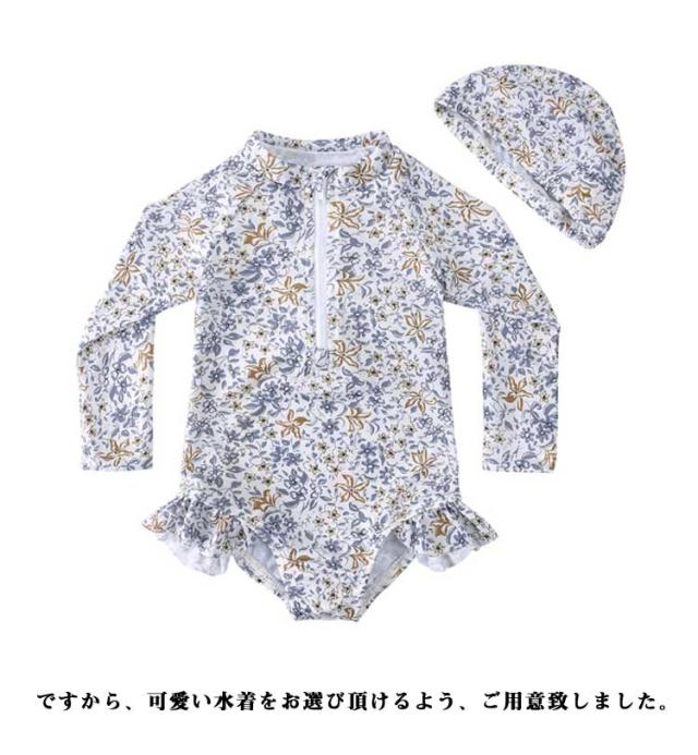 子ども 女の子 スイムウェアオールインワン オールインワン ワンピース 子供 フリル 長袖 おしゃれ キッズ 水着 花柄 総柄 ベビースクール水着 スイミングキャップ スポーツウエア ガールズ 子ども 子ども用 水着 スイミング 水遊び ワンピース型