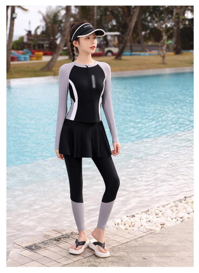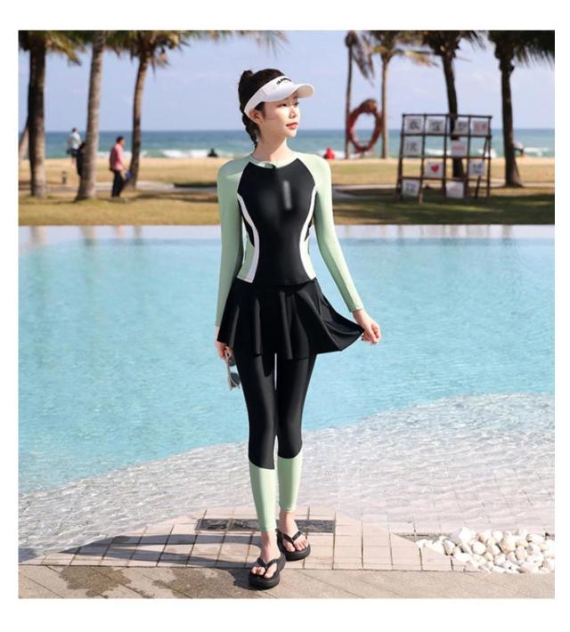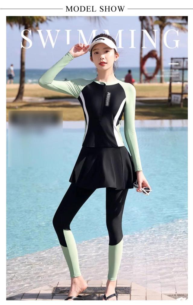レディース ママ水着 ウェットスーツ 3点セット ラッシュガード 水着 温泉 水陸両用 UVカット 速乾 胸パッド付き 長袖 上下 レギンス 海 スカート レディース 水遊び スクール フィットネス 水着 露出控えめ