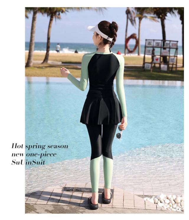 | 胸パッド付き水陸両用・ラッシュガード水着3点セット。 海水浴・温泉・マリンスポーツなど場面に活躍できる3点セット。長袖トップス×ロングパンツ×水着スカートの組み合わせで、シュノーケリング時の紫外線防止から温泉施設内でのカバーアップまで対応。 長袖トップスは取り外し可能な胸パッドを内蔵し、スポーツ時にも自然なバストラインをキープ。 嬉しいショートスカート付き、腰周りと太ももを覆うことで、気になる部分を適度に覆いながら、軽やかな印象をキープ。 | |