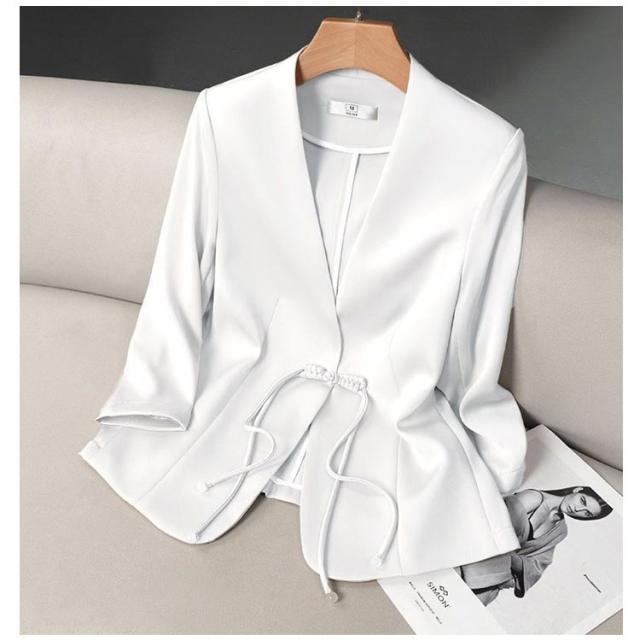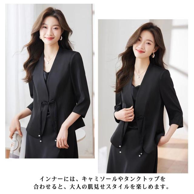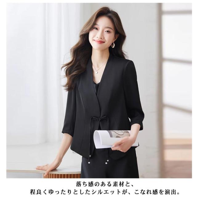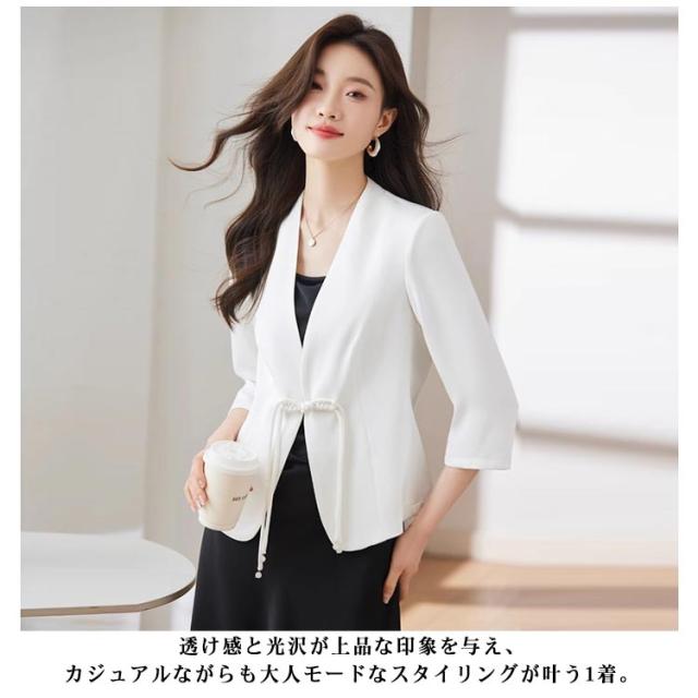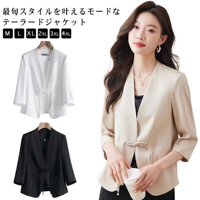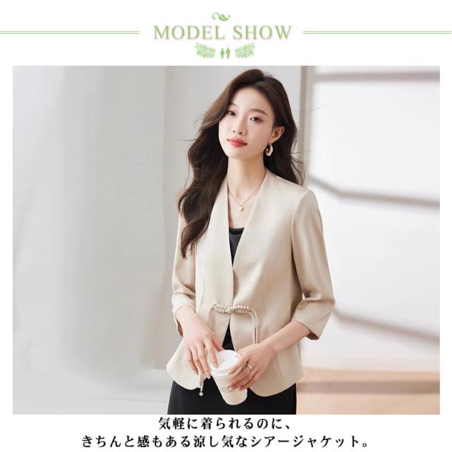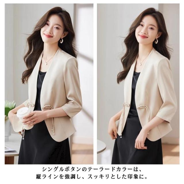 サマージャケット 春 ジャケット レディース テーラードジャケット サマー 涼しい 軽量 洗える 春夏 薄手 ゆったり 七分袖 送料無料 シングルボタン ミディアム丈 ビジネス 無地 OL 通勤 通学 お出かけ オフィス 洗える シンプル カジュアル