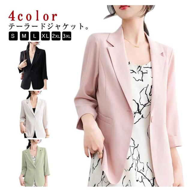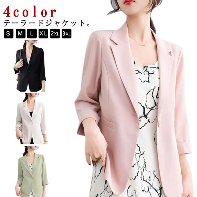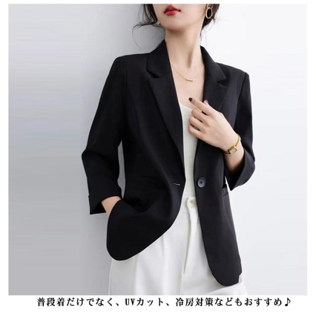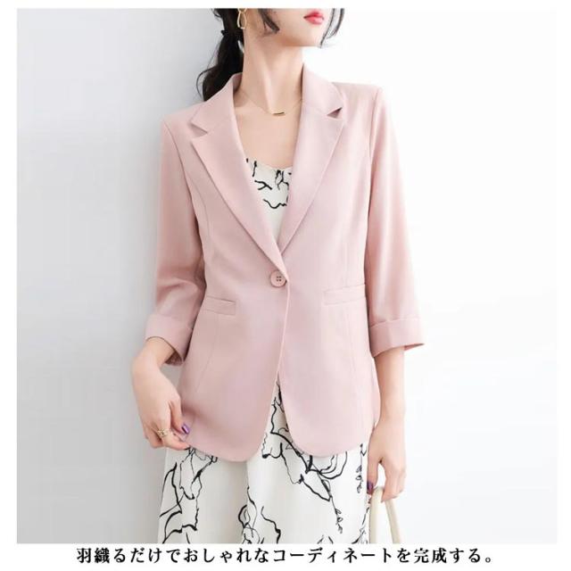 テーラードジャケット サマージャケット レディース 7分袖 スーツ ジャケット 夏 ジャケット 薄手 スリム カジュアルジャケット 羽織 上着 カーディガン ライトアウター ゆったり 通勤 オフィス 無地 細身 着痩せ 通勤 OL オフィス フォーマル 入学式 卒業式 面接 送料無料