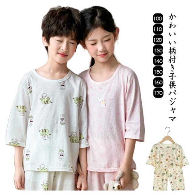 動物柄 子供服 男の子 ズボン 半袖パジャマ 半袖パジャマ コットン 綿 半袖tシャツ 7分丈パンツ パジャマ 女の子 パジャマ 半袖ルームウェア かわいい ルームウェア 総柄 部屋着 寝巻き セットアップ