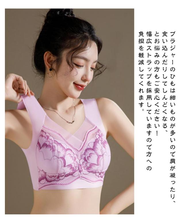 カップ付き 可愛い 通気性 レース ブラジャー 胸を小さく見せる 小さく見せるブラ 小さく見せるブラ 柔らかい かわいい ブラジャー 20代 可愛い レディース 着痩せブラ レースデザイン ノンワイヤー 胸が小さく見えるブラ 脇高 紐なし 30代 40代 50代 ギフト